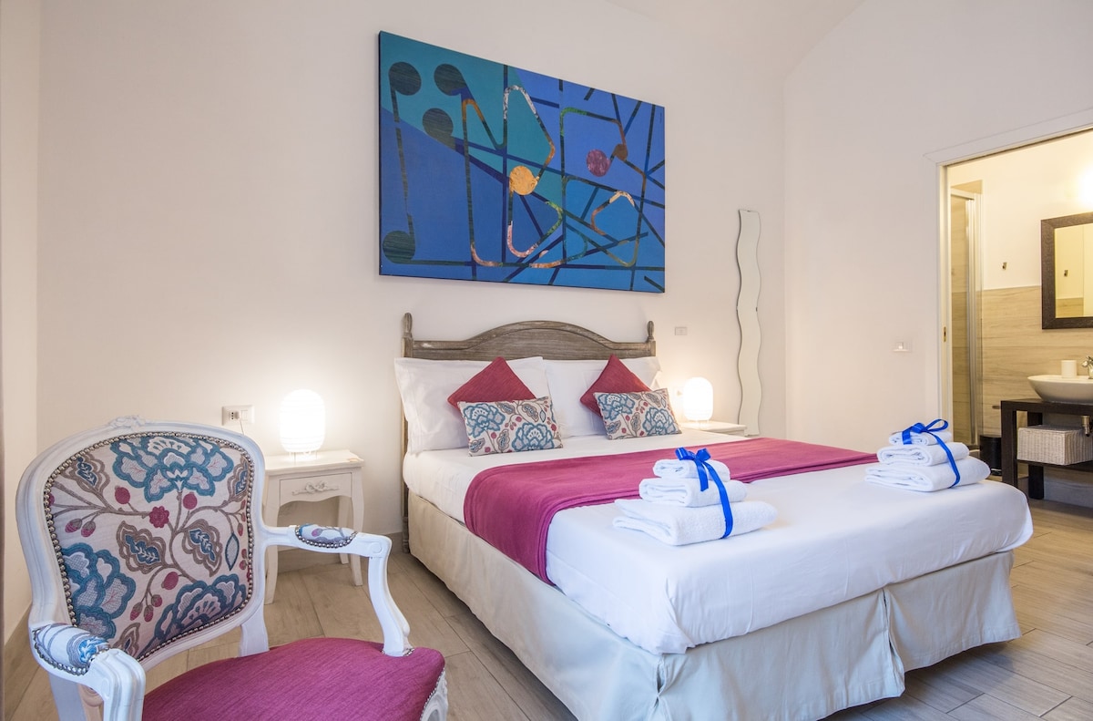 Maligo sa Roman light sa maliwanag, masigla at makulay na apartment na ito, na may mga designer furniture at terrace na tumatakbo sa buong bahay para sa eksklusibong paggamit. Ang liwanag ay walang alinlangan na ang elemento na nagpapakilala sa bahay na ito na nasa ikalimang palapag ng isang sinaunang palasyo at tinatangkilik ang terrace sa buong bahay kung saan maaari kang mag - almusal nang payapa upang tamasahin ang isang magandang baso ng Italian wine pagkatapos ng isang magandang araw sa paligid ng mga sinaunang kalye ng "walang hanggang lungsod".