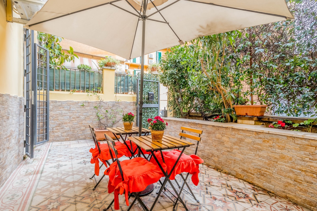 Quiet apartment w/priv garden, large bedroom, new kitchen, A/C, Wi-Fi, 300m to metro, big living room (w/sofa bed if needed) bug screen windows, vintage furnishing with a Nordic (no Ikea) style, open to a private shady garden equipped w/table+chairs to relax in open air. In the lively San Giovanni area, full of shopping opportunities, restaurants, supermarket, a vivacious daily fresh food market. Well placed, w/buses+metro routes to key parts of Rome and only 1200m. from the Colosseum and Forum!