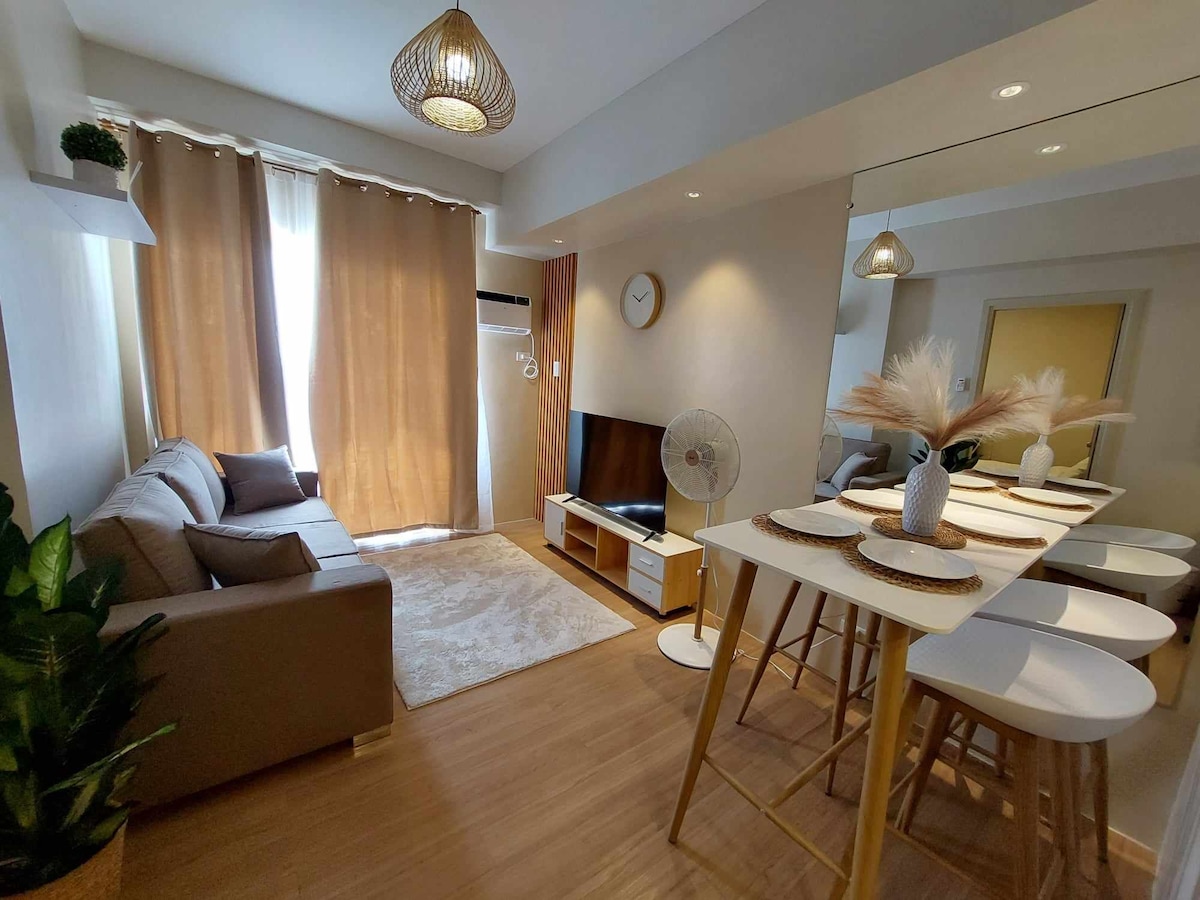 May sariling estilo ang natatanging lugar na ito. Ginawa para ma - enjoy mo ang naturesque na vibe kung saan pinagsasama ang kagandahan at kaginhawaan. + Mayroon kaming Netflix at Amazonstart} para sa iyong libangan. + Maaari kaming mag - isyu ng mga resibo ng BIR para sa Mga Kompanya. + Available ang Washer Dryer sa loob ng unit + Sariling Pag - check in na may ligtas na code sa pamamagitan ng aming awtomatikong smart lock + Ang balkonahe ay nagpapakita ng isang magandang Tanawin ng Paglubog ng araw at Lungsod + Paglalakad mula sa Limketkai Mall, at isang madaling pag - access sa The coffee Project sa buong kalye