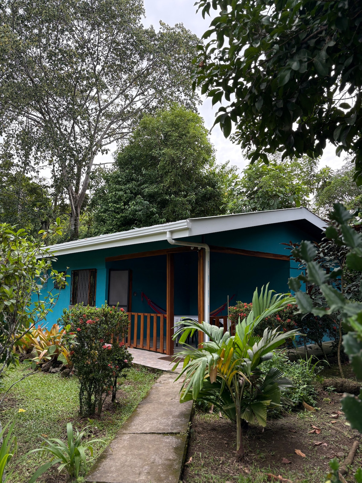 Komportableng hiwalay na bahay na nasa malaking lupain at may maliit na pribadong swimming pool at mga kuwartong may aircon. Napapalibutan ng mga puno ng prutas at primary forest. Puwede mong tangkilikin ang mga hayop at halaman na 5 minuto lang ang layo sa mga beach at sa National Park. Nagbibigay sa iyo ng privacy ang magandang lokasyon nito, habang madali mong mapupuntahan ang downtown ng Cahuita at ang mga tindahan, supermarket, at restawran doon. Pinapayagan ng tuluyan ang pagtatrabaho ayon sa panahon at teleworking, at pinapahintulutan ang munting alagang hayop. Sumangguni sa mga alituntunin sa tuluyan.