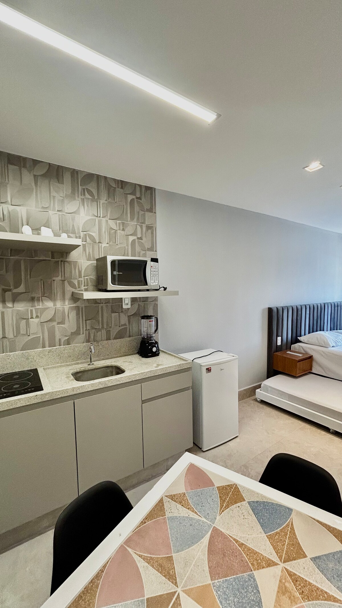 Relaxe neste espaço calmo e cheio de estilo. Uma suíte compacta, mas completa. O que você vai encontrar: Decoração clean, banheiro privativo impecável e uma atmosfera de total serenidade. Diferencial: Localizado em uma área segura e tranquila, garantindo uma noite de sono perfeita sem abrir mão do fácil acesso aos principais pontos da região. de estilo.