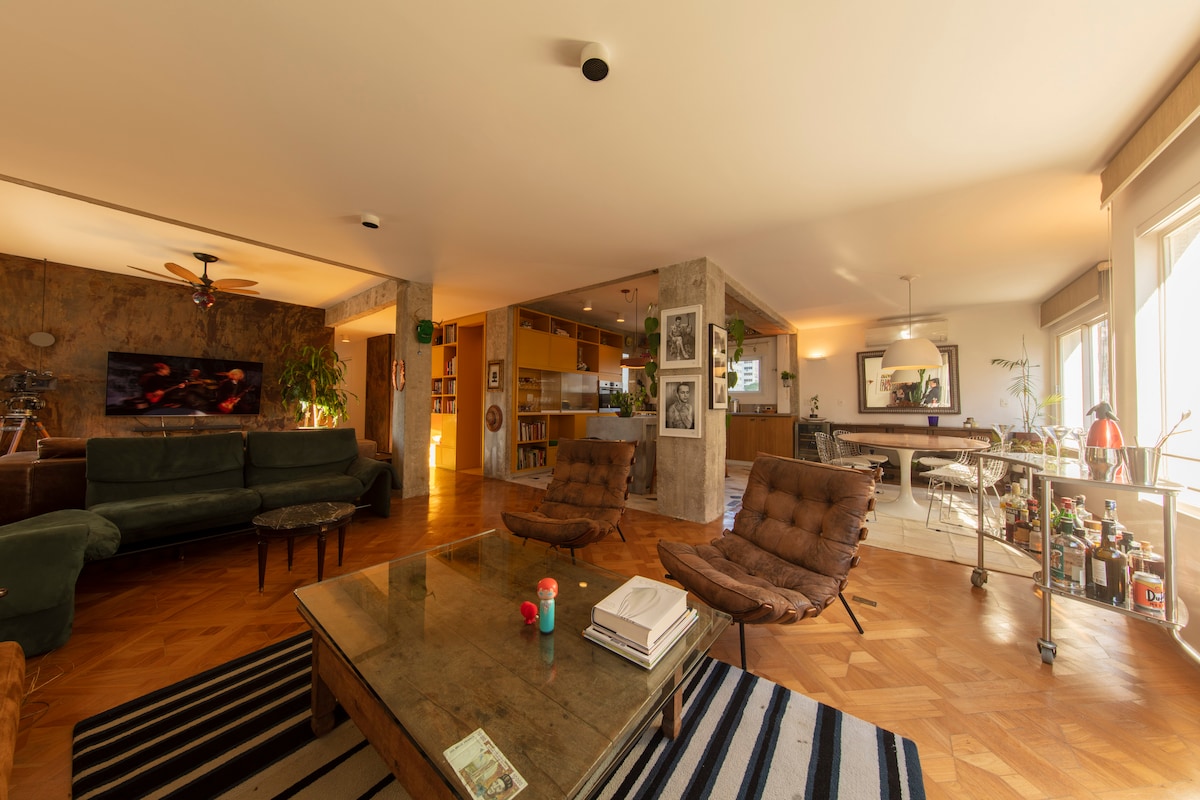 Isang lihim na natigil sa puso ng Pinheiros. 100% revitalized coverage sa isang tradisyonal na gusali na nakaharap sa Praça Benedito Calixto, isa sa mga pangunahing landmark ng lungsod, malapit sa mga pangunahing atraksyon sa rehiyon: mga fair, bar, restawran, tindahan, parisukat, galeriya ng sining. Sa pamamagitan ng moderno at stripped - down na estilo, na inspirasyon ng pang - industriya na disenyo ng mga rooftop sa New York na sinamahan ng kaluluwa at hilaw na materyal na tipikal ng kultura ng Brazil. Wala pang 7 minutong lakad mula sa Metro.