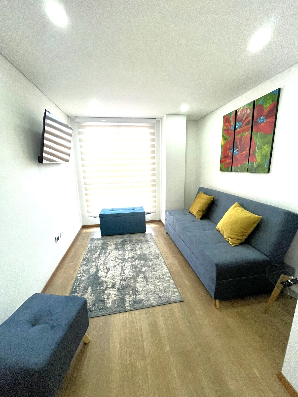 Mag-enjoy sa isang magandang karanasan sa lugar na ito na nasa sentro. May kumpletong kagamitan sa kusina ang aming apartment, komportableng sala na puwedeng gawing queen size bed, 3 kuwarto, 2 kumpletong banyo, moderno at komportableng apartment, at bagong-bago ang lahat. washer/ dryer sa apt, 1 libreng parking spot assign, mainit na tubig, tv cable, wifi, smart lock may gym, pool, sauna, palaruan ng mga bata, at marami pang amenidad ang complex. 24 na oras na seguridad, elevator papunta sa apartment malapit sa lahat ng bagay sa Cajica.