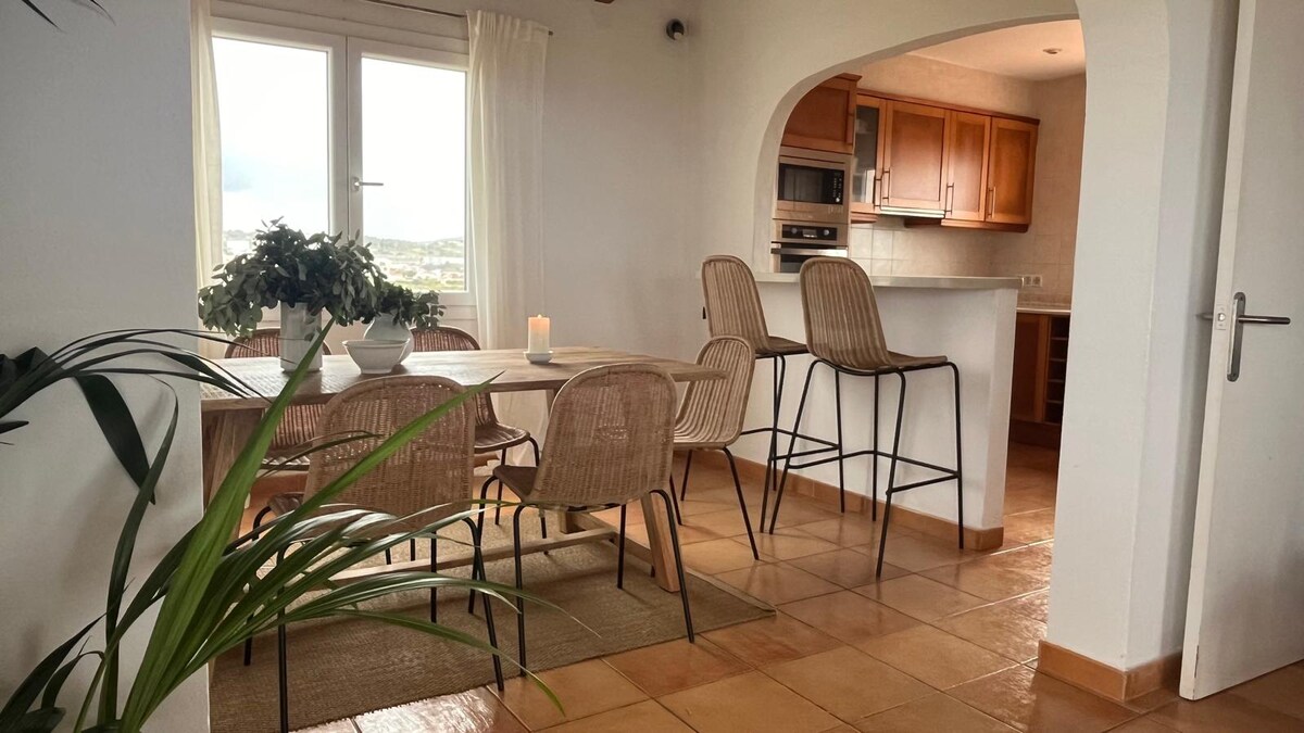 Maliwanag na boho-chic apartment na may tanawin ng dagat