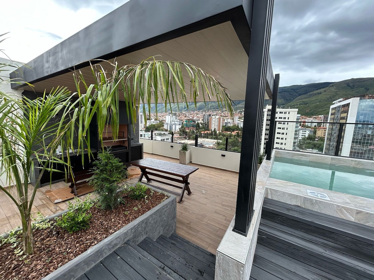 Disfruta de una experiencia maravillosa en este departamento ubicado en la mejor zona de Cochabamba ya sea para un viaje de negocios o vacaciones con tu familia. confort, elegancia y limpieza con una inmejorable vista a la ciudad.