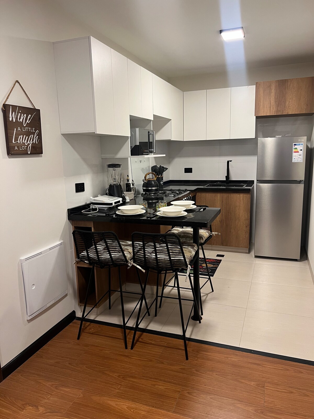 Disfruta del encanto de este moderno Smart estudio completamente nuevo. Amoblado y equipado con todo lo necesario para hacer de tu estadía un momento placentero. Cuenta con cama extra cómoda, tamaño Queen, TV de 32 pulgadas y Wifi. Además de refrigerador, cocina, caldera eléctrica, mesa con dos sillas. Agua caliente 24/7 Disfruta de este ambiente confortable en tus viajes de placer o de negocio.