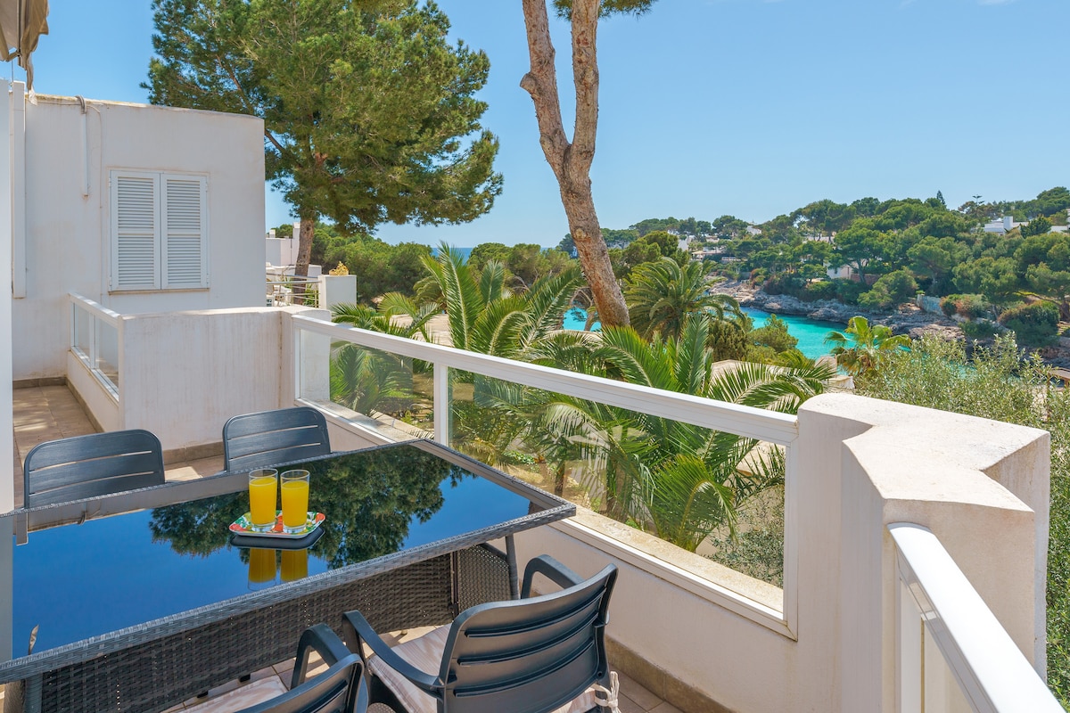 Masiyahan sa isang romantikong pamamalagi sa aming ganap na na - renovate, naka - istilong apartment sa tabing - dagat sa Mallorca! Ang bagong kusina na may mga modernong kasangkapan ay bubukas sa isang maliwanag na sala at kainan, na nagtatampok ng malalaking bintana at natitiklop na mga pintuan ng salamin sa isang pribadong balkonahe na may mga nakamamanghang tanawin ng dagat sa buong taon. Ang apartment ay may AC at heating para sa iyong kaginhawaan. Matatagpuan mismo sa beach ng Cala Marçal, ilang hakbang lang mula sa mga cafe, restawran, at merkado. Luxury, estilo, at kaginhawaan sa isang perpektong bakasyunan sa baybayin!