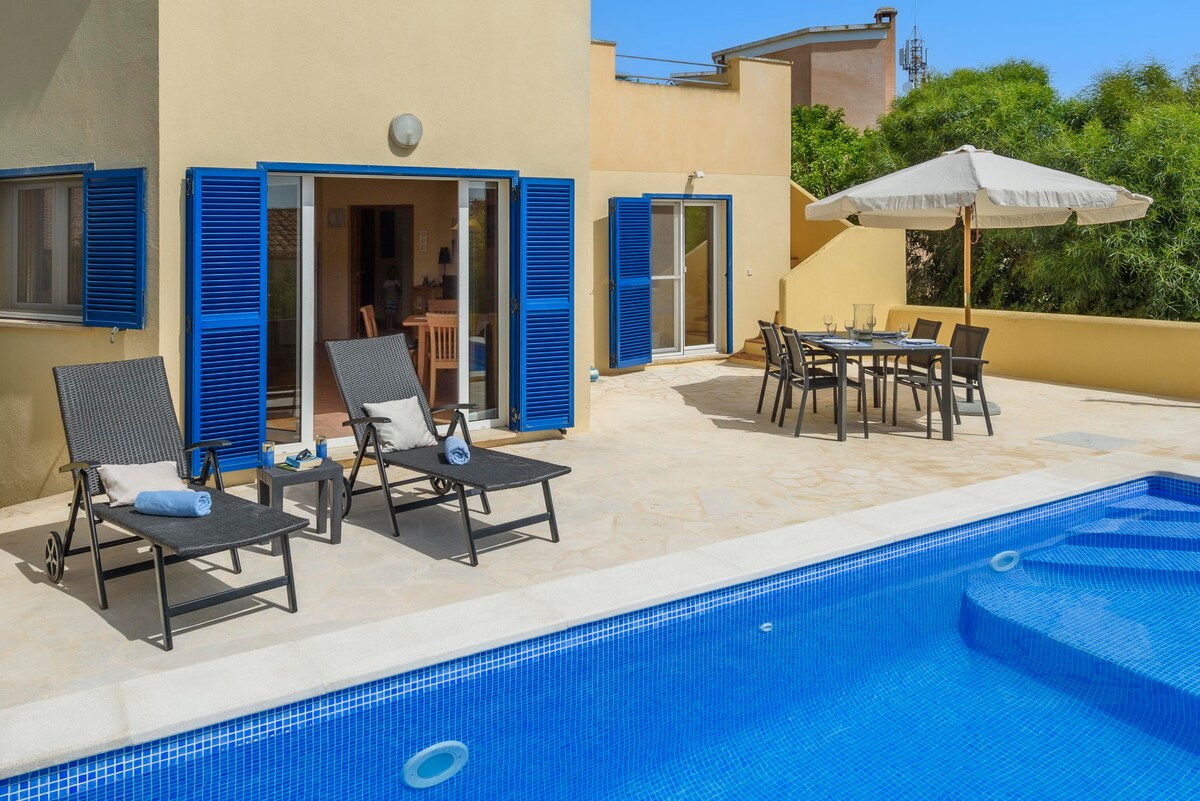 Mula sa Cala, makikita mo ang maaliwalas na villa na ito, na may pool at malilinis na panlabas na espasyo at mga interior na puno ng liwanag at kulay. Kung naghahanap ka ng kapayapaan at katahimikan sa isang payapang setting, na may lahat ng ginhawa sa iyong mga kamay, huwag mag - atubiling ... ito ang iyong tahanan !!