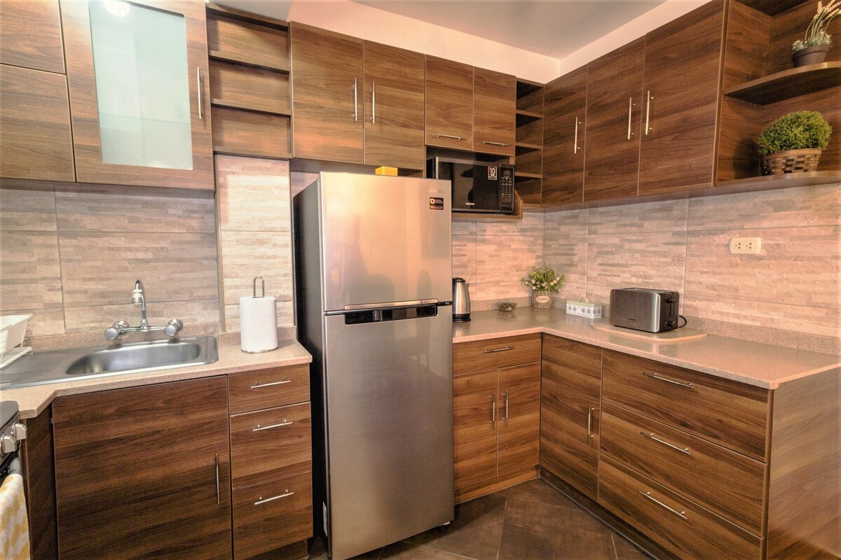 Ang apartment ay matatagpuan sa isang gitnang lugar ng Cusco, kung saan makakahanap ka ng mga supermarket, restawran, parmasya, bangko at institusyong pinansyal, mga bahay ng palitan, mga klinika sa kalusugan at iba pa, simple, functional, maaliwalas at maliwanag na modernong dekorasyon. Living room na may library, Wifi, Netflix, Magic cable, kumportableng sofa, modernong kusinang kumpleto sa kagamitan at silid - kainan, shower na may maraming mainit na tubig 24 na oras, terrace na may payong at malalawak na tanawin ng lungsod.