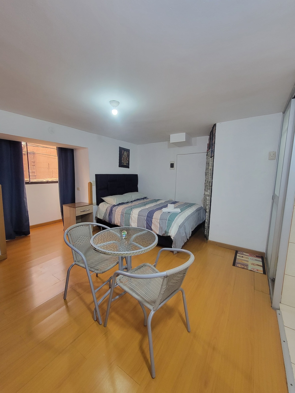 Departamento pequeño, bien iluminado por luz Natural, muy buena ubicaciòn, acogedor, totalmente independiente, cerca a Universidad Nacional, Mall Real Plaza y Avenidas Principales. Realmente céntrico.