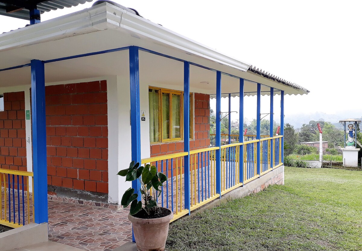 Relax, recharge or work from home in our quiet Wifi enabled cabin with Direct TV, en suite bathroom including a heated bathtub and shower. The cabin has a double bed and sofa that converts to two narrow single beds, a private garden, kitchen, BBQ and your own veranda overlooking stunning views of the Cauca valley. Close to the historic town of Marsella. Relax in the cool tranquil calm of your own beautiful garden filled with flowers and birds. Based on a small family owned Coffee farm.