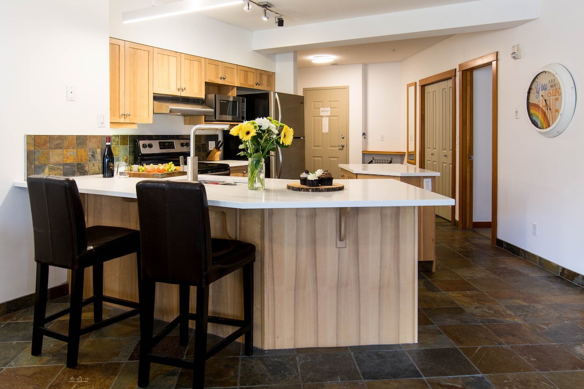 Nagtatampok ang 1700 talampakang parisukat na dalawang silid - tulugan na ito ng lahat ng kailangan mo sa isang tuluyan na malayo sa bahay. Masiyahan sa isang magandang bukas na kusina, malaking fireplace at mga kisame na may vault na nagpapakita ng mga nakamamanghang tanawin ng bundok! Sa labas ng iyong condo, may mga trail na naglalakad, coffee shop, grocery, restawran, at marami pang iba. Mainam ang bakasyunang ito para sa mga mag - asawa, pamilya, at grupo na naghahanap ng tunay na home base para tuklasin ang Canadian Rockies.