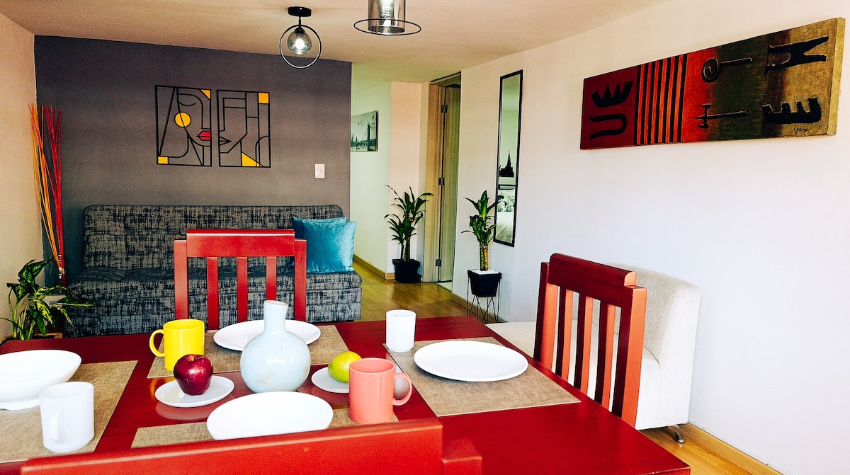 Granada 17.22 | Mga Tuluyan sa Boutique Mag-enjoy sa Cali sa 63mtr2 apartment na ito sa Granada, ang pinakamagandang "Zona Rosa" (masiglang lugar). Modern at marangyang disenyo na nag - aalok ng 100% autonomous access, na ginagarantiyahan ang iyong privacy at seguridad. MGA AMENIDAD: Kusina na Nilagyan ng Kagamitan Fiber Optic WiFi Desk A/C Smart TV Queen Bed Mainit na Tubig 2 Banyo Sofa Bed Tamang - tama para sa mga mag - asawa, magkakaibigan, o pamilya. Isawsaw ang iyong sarili sa kultural at gastronomic na buhay, mga bar, at mga tindahan. Ilang minuto lang mula sa Boulevard del Río at La Ermita Church.
