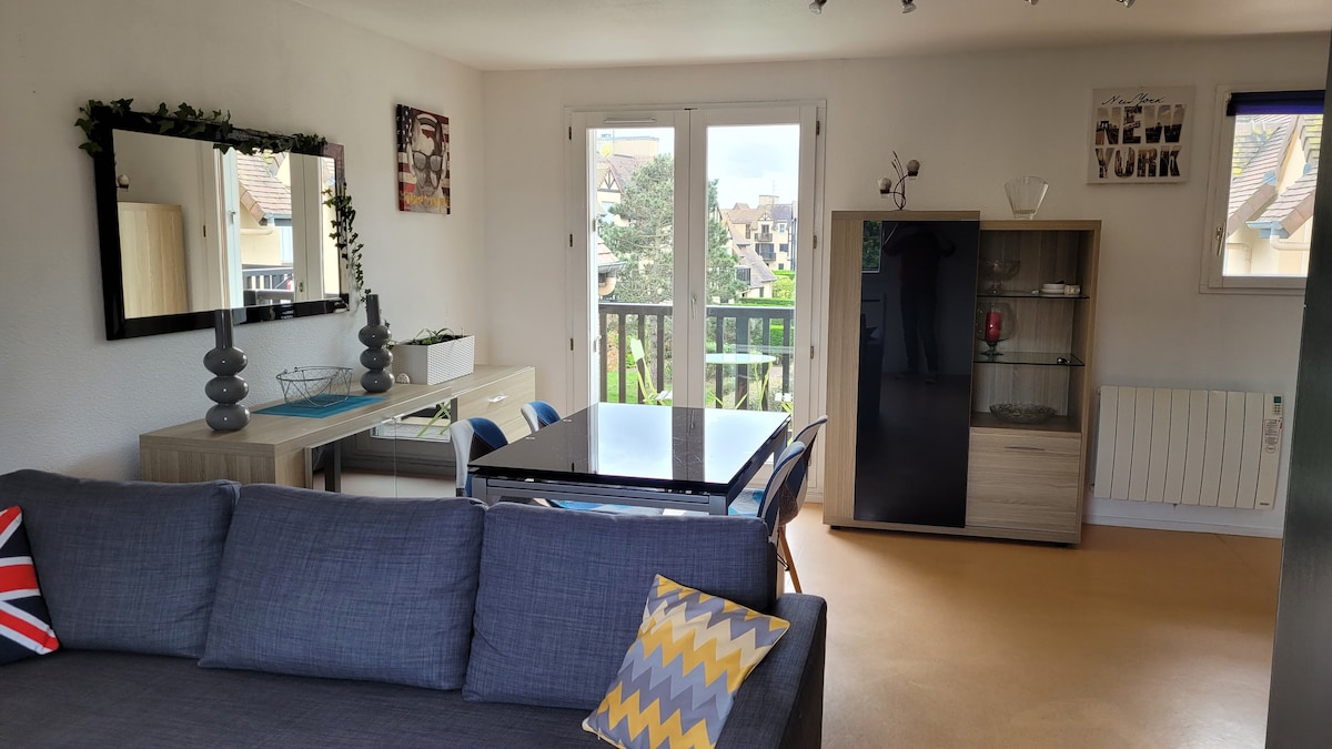 Sa isang nakalistang Cabourgeaise villa, na itinayo sa katapusan ng ika -19 na siglo na tipikal ng magandang panahon, dumating at i - recharge ang iyong mga baterya at tamasahin ang mga kagalakan ng Normandy sa villa na ito na ganap na na - renovate noong 2022. May charm at elegante ang apartment na ito na may sariling kusina sa gitna ng Cabourg. Sa isang chic at pinong kapaligiran, mayroon kang lahat ng mga amenidad para sa isang di malilimutang pamamalagi, isang queen size na kama, isang spa jacuzzi, isang hardin na nakaharap sa timog na may barbecue at mga silid-pahingahan at gym.