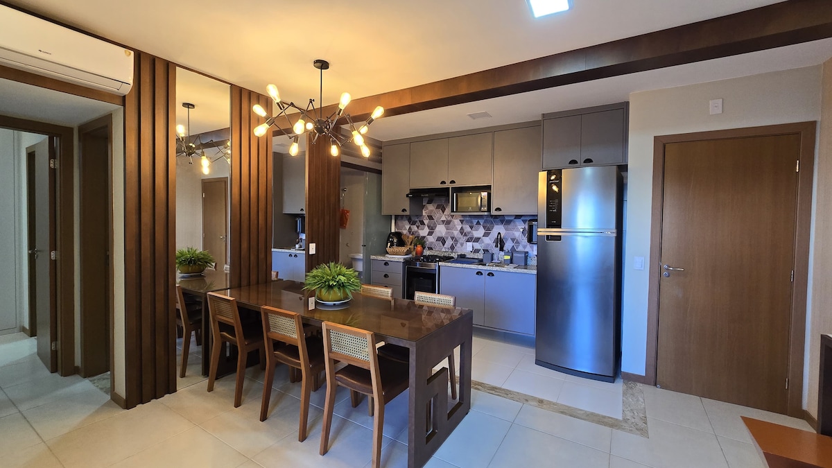 Apartment na malapit sa Boulevard mall, general hospital, SESI Senai . 5 minuto papunta sa shopping Boulevard 5.0 km 7 minuto Espaço 2000 , 5.9 km 25 mins Arembepe Beach 25.1 km 15 minuto mula sa sentro ng bedçari 8.3 km . - Wi - Fi 300 megas - TV smart C/ Globo Play / Prime / You Tube - Mainit na shower - 1 silid - tulugan na may Ar - 1 silid - tulugan na may bentilador - 1 Kolektibong garahe lang ang puwesto sa condo Magsaya kasama ng buong pamilya sa naka - istilong lugar na ito.