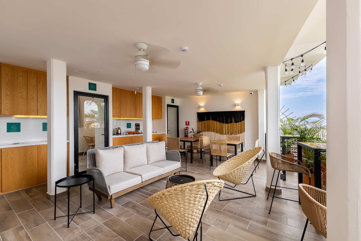 Pinagsasama ng Raíces Nómadas, na matatagpuan sa gitna ng Puerto Vallarta, ang kaginhawaan, estilo, at pag - andar sa isang masiglang lugar. Perpekto para sa mga biyahero sa paglilibang at negosyo, nagtatampok ang gusali ng rooftop terrace na may mga nakamamanghang tanawin ng karagatan, na mainam para sa panonood ng paglubog ng araw. Masisiyahan ang mga bisita sa pinaghahatiang kusina, panlabas na silid - kainan, at mga meeting room na idinisenyo para sa malayuang trabaho at mga online na pagpupulong. Ilang hakbang lang mula sa beach, nag - aalok ang Raíces Nómadas ng perpektong base para maranasan ang pinakamaganda sa Vallarta.