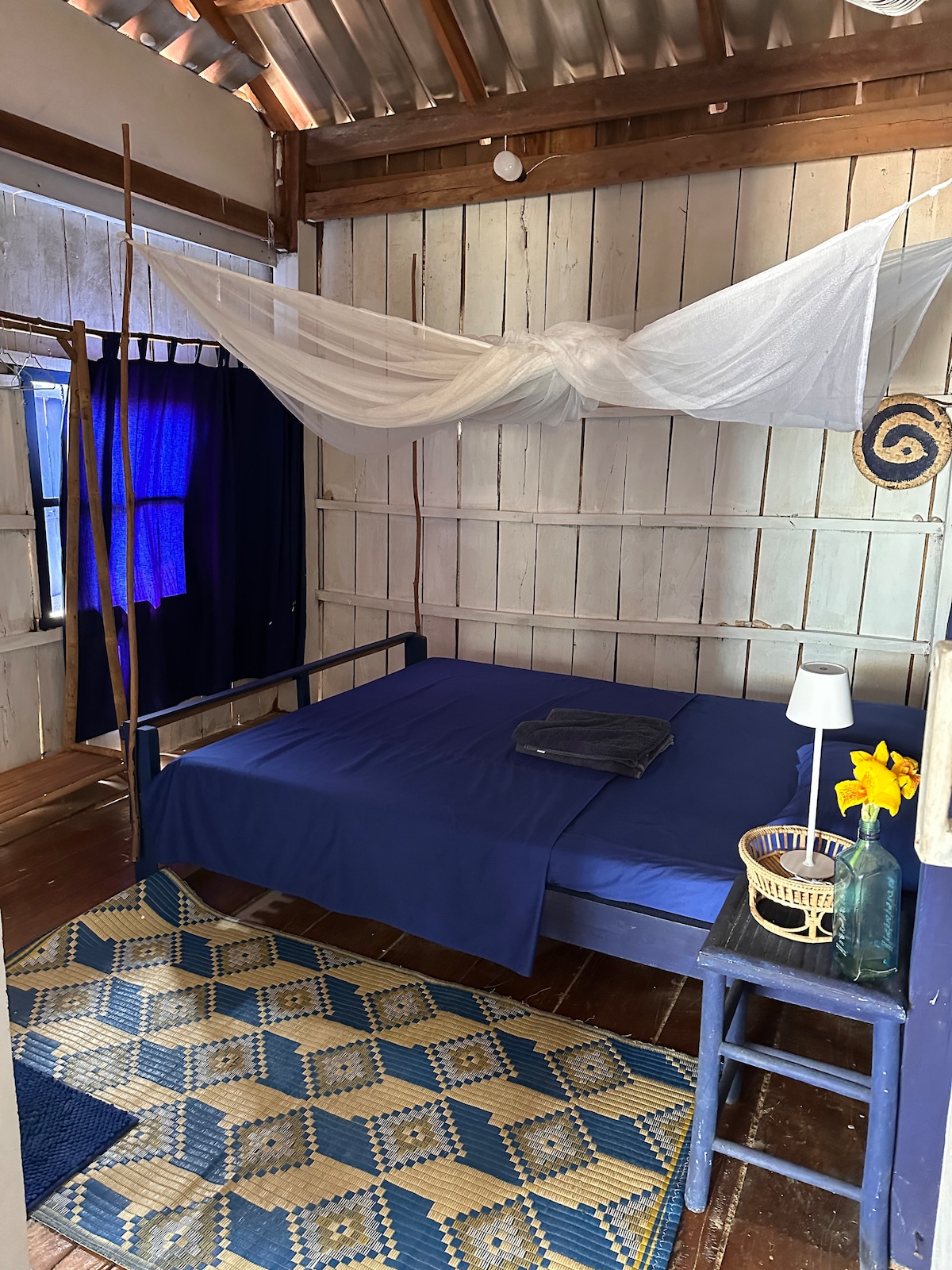 Ang aming pinakamaliit at pinakamurang bungalow, na gawa sa kahoy na may mga bubong na dayami. Simple lang ang mga bungalow na may mababang badyet. Ang bawat bungalow ay may double mattress, lockable storage box at mosquito net para sa iyong kaginhawaan. Sa pamamagitan ng perpektong mga upuan sa iyong sariling maliit na terrace, magkakaroon ka ng perpektong lugar para magrelaks. Ang bungalow na ito ay may mga shared na pasilidad, malamig na tubig, ang liwanag ay ibinibigay sa pamamagitan ng solar system, istasyon ng paglo - load ng komunidad na pinapatakbo lamang sa araw sa reception.