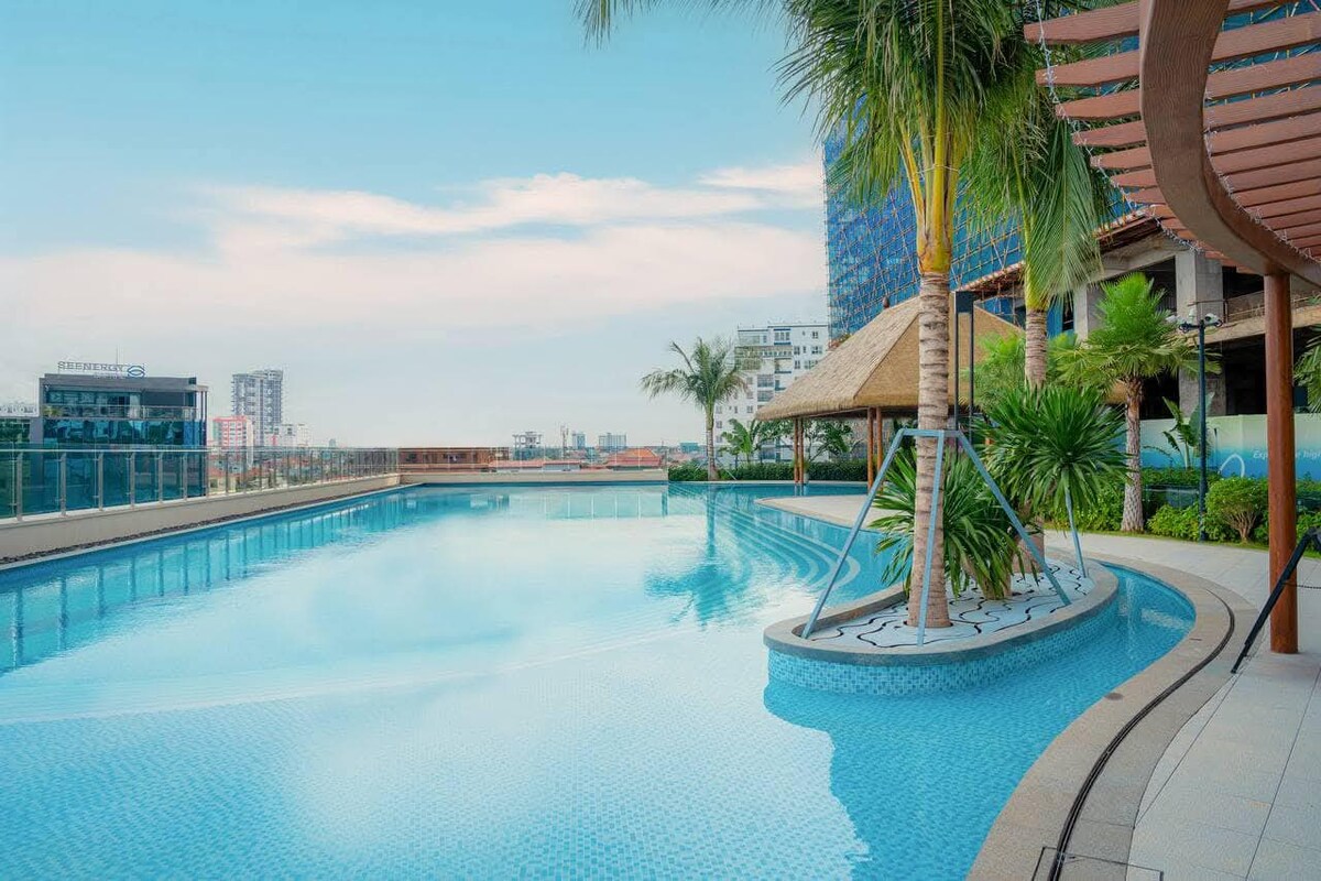 Malinis at maaliwalas na mga serviced apartment na may magandang rooftop swimming pool kung saan matatanaw ang ilog sa loob ng 10 minutong biyahe mula sa sentro ng lungsod. Nag - aalok ang Peninsula Phnom Penh ng mga accommodation na may komplimentaryong Wi - Fi, shared Clubhouse, at Co - working Lab. Nilagyan ang lahat ng kuwarto ng kumpletong hanay ng mga in - room facility: kusinang kumpleto sa kagamitan, sala at dining area, TV at Video. Kasama sa mga extra ang electric kettle, mga coffee/tea facility, at libreng bote ng tubig.