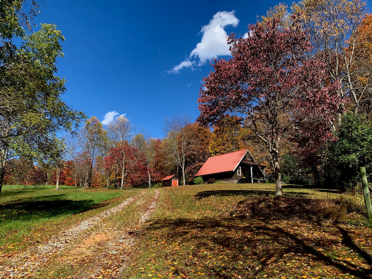Tiny house/big personality! Stay on our 350 acre farm where Bigfoot sightings & dark history have occurred. Intriqued by the paranormal? We provide ghosthunting gear for your visit. Cozy private cabin is nestled under old trees in a mountain valley on a reclaimed coal mine site. 30 minutes to New River Gorge National Park. 20 minutes to WV Bigfoot museum. 10 minutes to Summersville Lake. 5 minutes to a Winery and Distillery. Walk our farm trails, relax & stargaze.