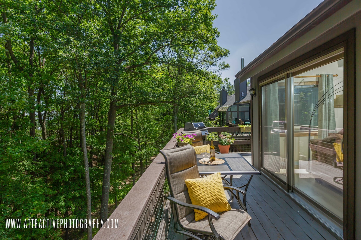 Maligayang pagdating sa Oak View, ang aming maaliwalas na Scandinavian - inspired dream getaway. Nasasabik kaming tanggapin ka sa aming tuluyan at umaasa kaming magugustuhan mo ito gaya ng ginagawa namin. Isang nakakarelaks at tahimik na lugar, nag - aalok ang Oak View ng maraming espesyal na hawakan, kabilang ang isang kalan ng kahoy sa kalagitnaan ng siglo, mga speaker ng Sonos sa kisame, malalaking sliding door, firepit sa labas, at mapayapang tanawin na gawa sa kahoy. Wala pang 20 minuto mula sa mga panloob na parke ng tubig, resort, at parke ng estado!