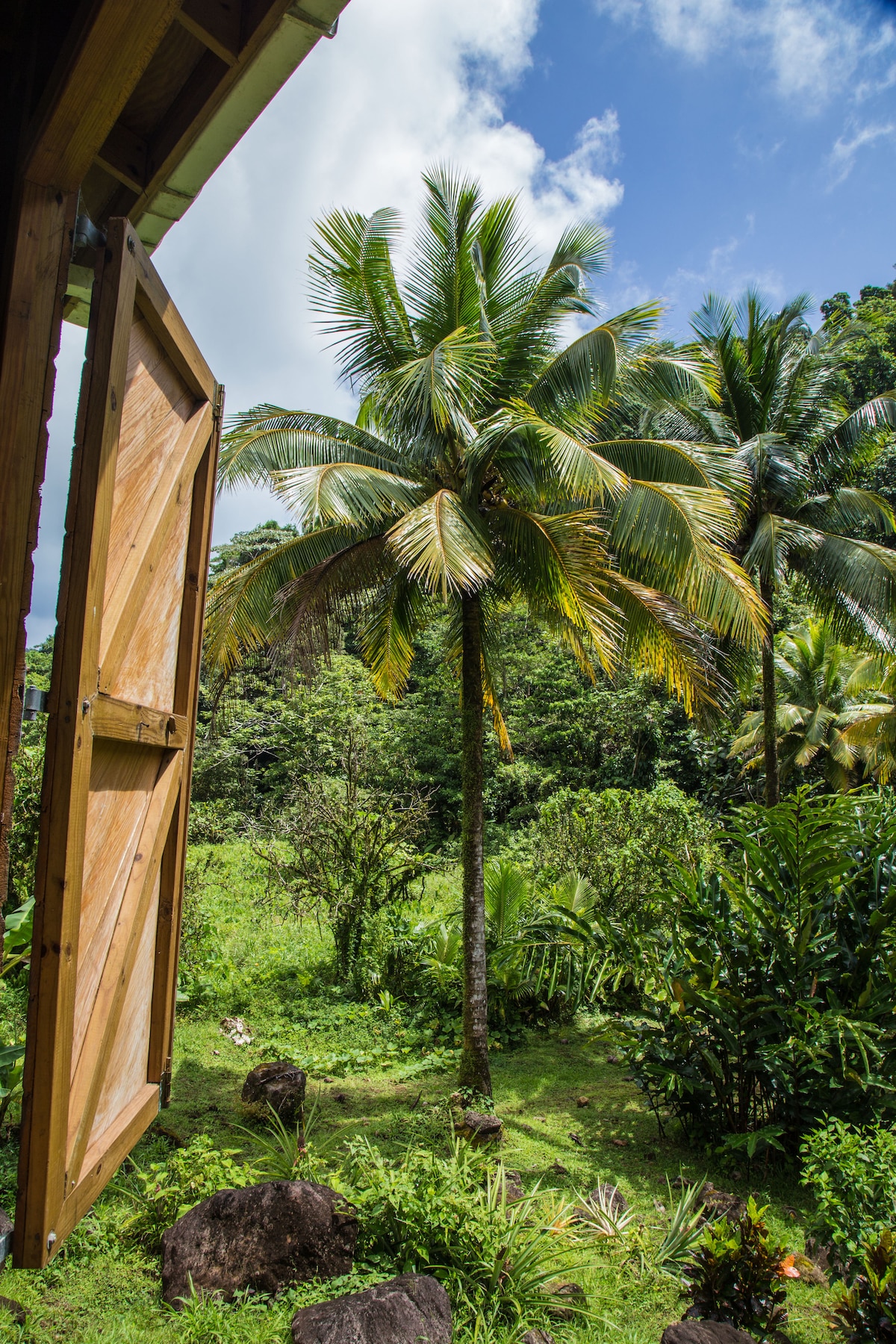 Malapit sa mga sikat na hiking trail, matatagpuan ang bagong ayos na cabin na ito sa isang mapayapa at liblib na hardin sa isang gumaganang organic farm. May mga nakamamanghang tanawin ng mga nakapaligid na bundok at iba 't ibang hayop. May perpektong kinalalagyan sa Roseau Valley, maigsing biyahe ito mula sa kabisera at sa mga kalapit na nayon ng Trafalgar, Wotten Waven, at Laudat.