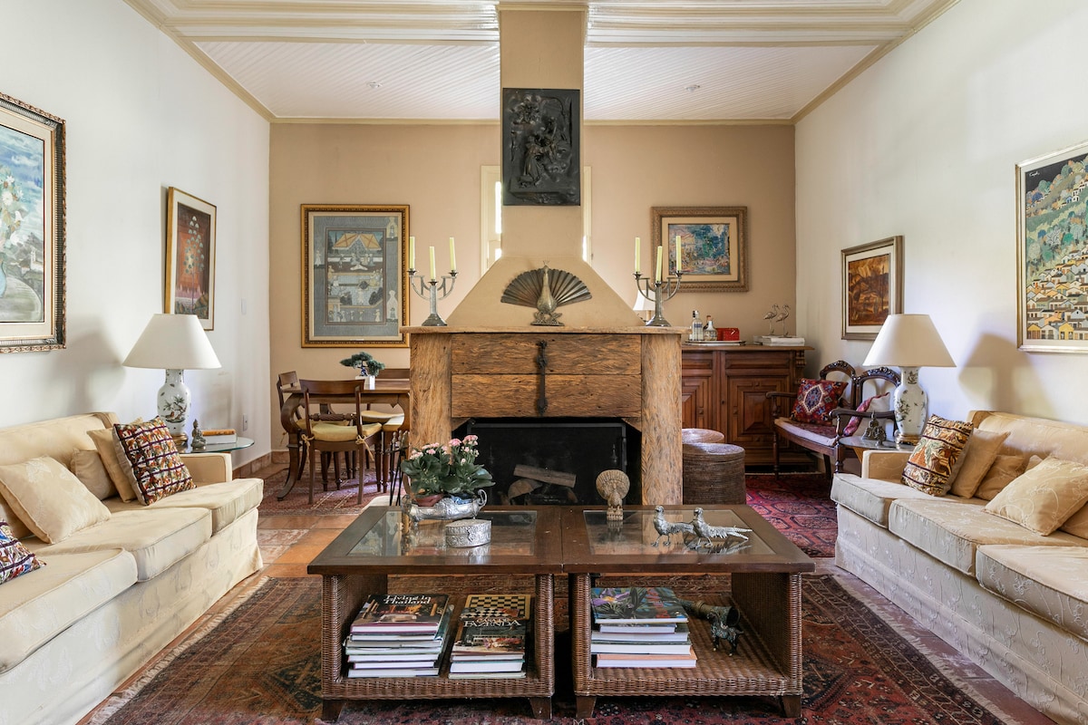 Ito ay isang magandang ari - arian sa kanayunan ng panahon ng kape, napreserba at na - update, na nagpapanatili ng mga orihinal na katangian. Mayroon itong infinity pool, opisyal na tennis court, soccer field, koi pond at waterfalls, gym at humid sauna. Mayroon itong magandang damuhan at parke na may tanawin, na may mga daanan sa mga bato, pag - iilaw, mga bangko, magagandang eskultura, kung saan ang magagandang pave at iba pang ibon ay naglalakad nang tahimik. Account c 3 lawa c tilapias at magandang kiosk sa anyo ng Chinese pagoda.