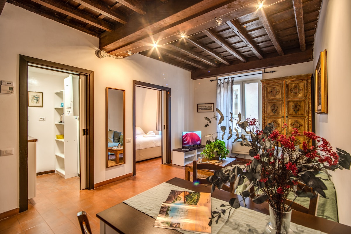 Maligayang pagdating sa apartment sa Cancelleria, na matatagpuan sa gitna ng makasaysayang sentro ng Rome! Nag - aalok ang bagong na - renovate na flat na ito ng natatanging timpla ng modernong kaginhawaan at makasaysayang kagandahan. Ang magugustuhan mo: - Walang kapantay na lokasyon kung saan matatanaw ang Palazzo della Cancelleria, ang pinakamagandang palasyo ng Renaissance sa Rome, na itinayo ni Bramante(1486 AD) - Ganap na na - renovate noong 2024, na nagtatampok ng upscale na kontemporaryong dekorasyon - King bed (180x200cm) at sofa bed w/20cm mattress para sa pinakamataas na kaginhawaan - Orihinal na kisame na gawa sa kahoy na mula pa noong mga siglo