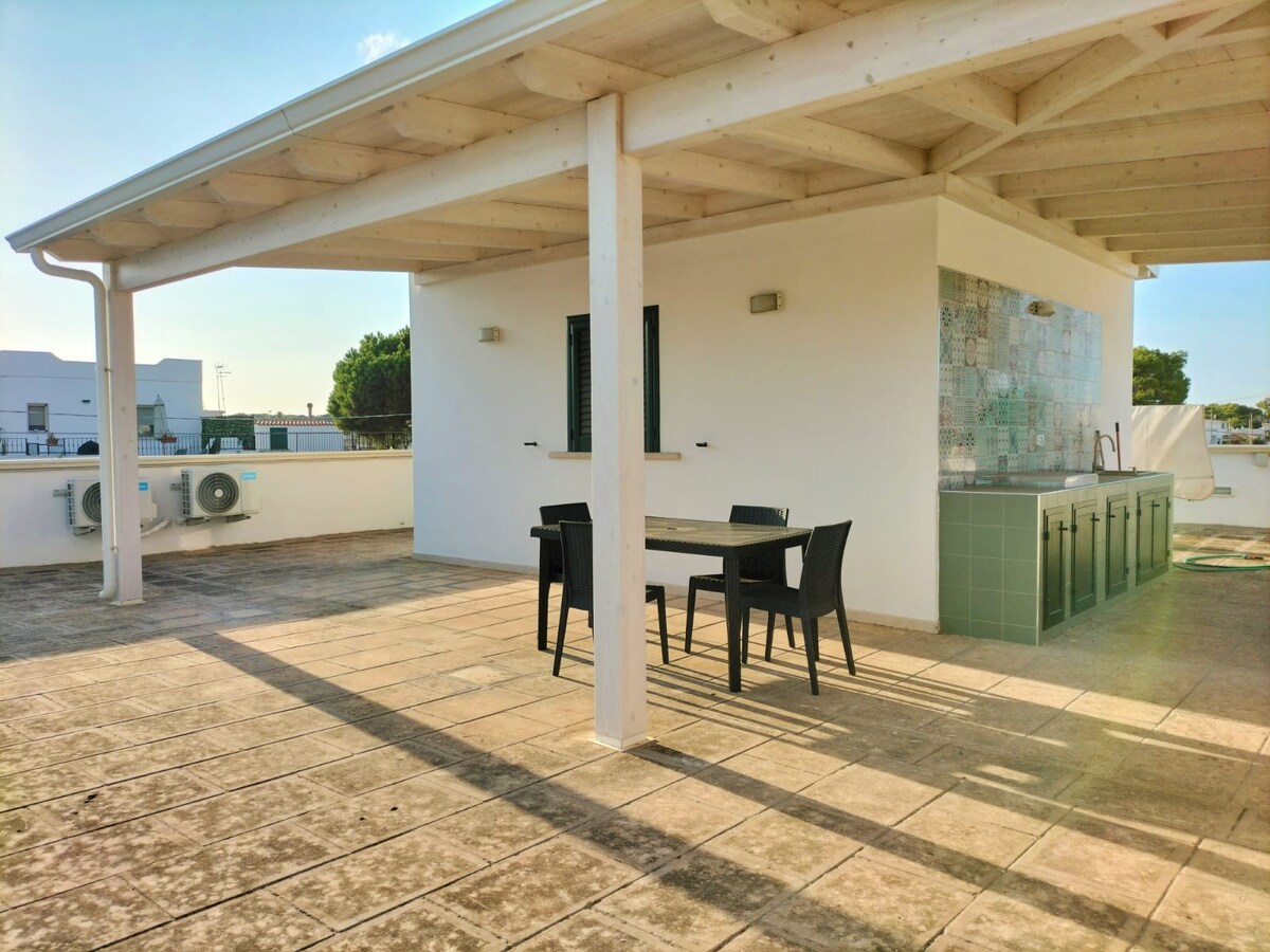 Isang Oasis ng Dagat, Kalikasan, at Kasayahan Ilang hakbang lang mula sa malinaw na kristal na dagat ng Salento, na napapalibutan ng mga walang dungis na beach, gintong buhangin, at mabangong Mediterranean scrub, naghihintay ang iyong pangarap na bakasyon. Ipinagmamalaki ng aming property ang pangunahing lokasyon - malapit sa sentro ng bayan, kung saan makakahanap ka ng mga karaniwang restawran, artisan gelato shop, at masiglang venue ng nightlife. Nag - aalok kami ng iniangkop na serbisyo sa pagtanggap, na may mga tip at suhestyon sa mga pinakamagagandang atraksyon