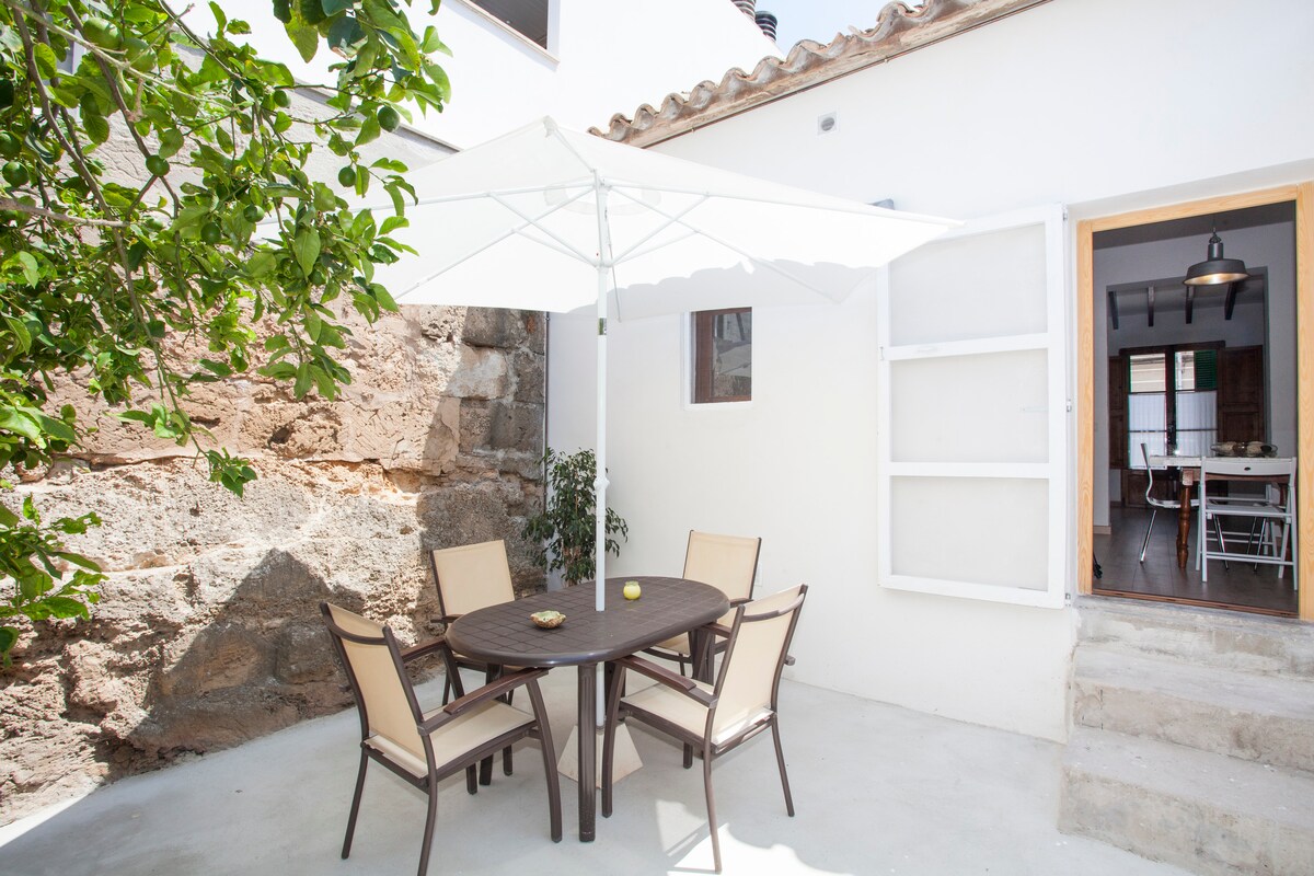 Típica casa mallorquina con amplio patio trasero completamente reformada. Situada en una zona céntrica de Palma cerca del casco antiguo, Santa Catalina, Paseo Marítimo y Paseo Mallorca. En la amplia terraza se sentirá como si no estuvieses en el centro de la ciudad. Palma es la capital de Mallorca y una buena base para visitar sus playas distribuidas alrededor de la isla y visitar a pie el casco antiguo, calles comerciales y restaurantes y bares de los barios de Santa Catalina o la Lonja.