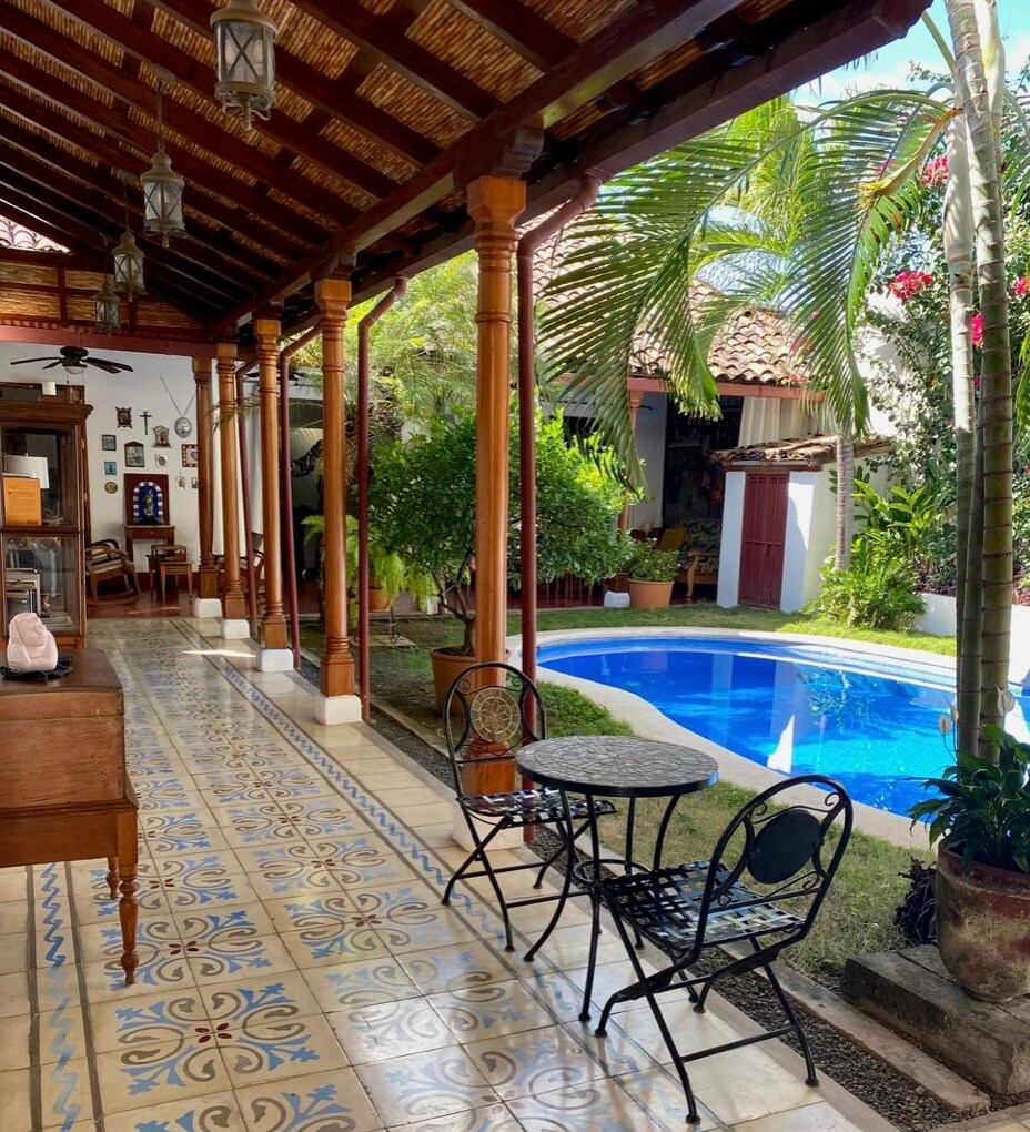 Tuklasin ang kolonyal na Granada mula sa Tesoro Dorado! 3 bloke lang mula sa Central Park at Granada Cathedral, nagtatampok ang maliwanag na kolonyal na tuluyang ito ng nakamamanghang central pool na bukas sa kalangitan. Masiyahan sa engrandeng sala, kainan sa tabi ng pool, at kusinang kumpleto ang kagamitan. Ang lahat ng 3 maluwang na silid - tulugan ay may A/C at mga pribadong banyo. Maraming lugar para kumalat at mag - enjoy ang malalaking pamilya. Magrelaks sa terrace sa itaas na palapag na may mga tanawin ng bulkan at Katedral. Maglakad papunta sa mga restawran at nightlife ng Calle la Calzada!