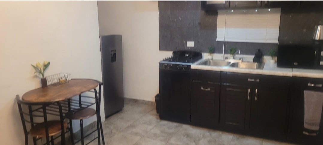 Relájate en este espacio elegante, privado y cuidadosamente diseñado para ofrecer comodidad en cada detalle. Disfruta de una cocina equipada, área de comedor, cafetera para tus mañanas y una habitación acogedora con excelente iluminación. Su ambiente tranquilo y de bajo tránsito lo convierte en el lugar ideal para desconectarte y descansar plenamente. Incluye estacionamiento ideal para vehículos compactos. Una excelente opción para viajeros que valoran privacidad, estilo y funcionalidad.