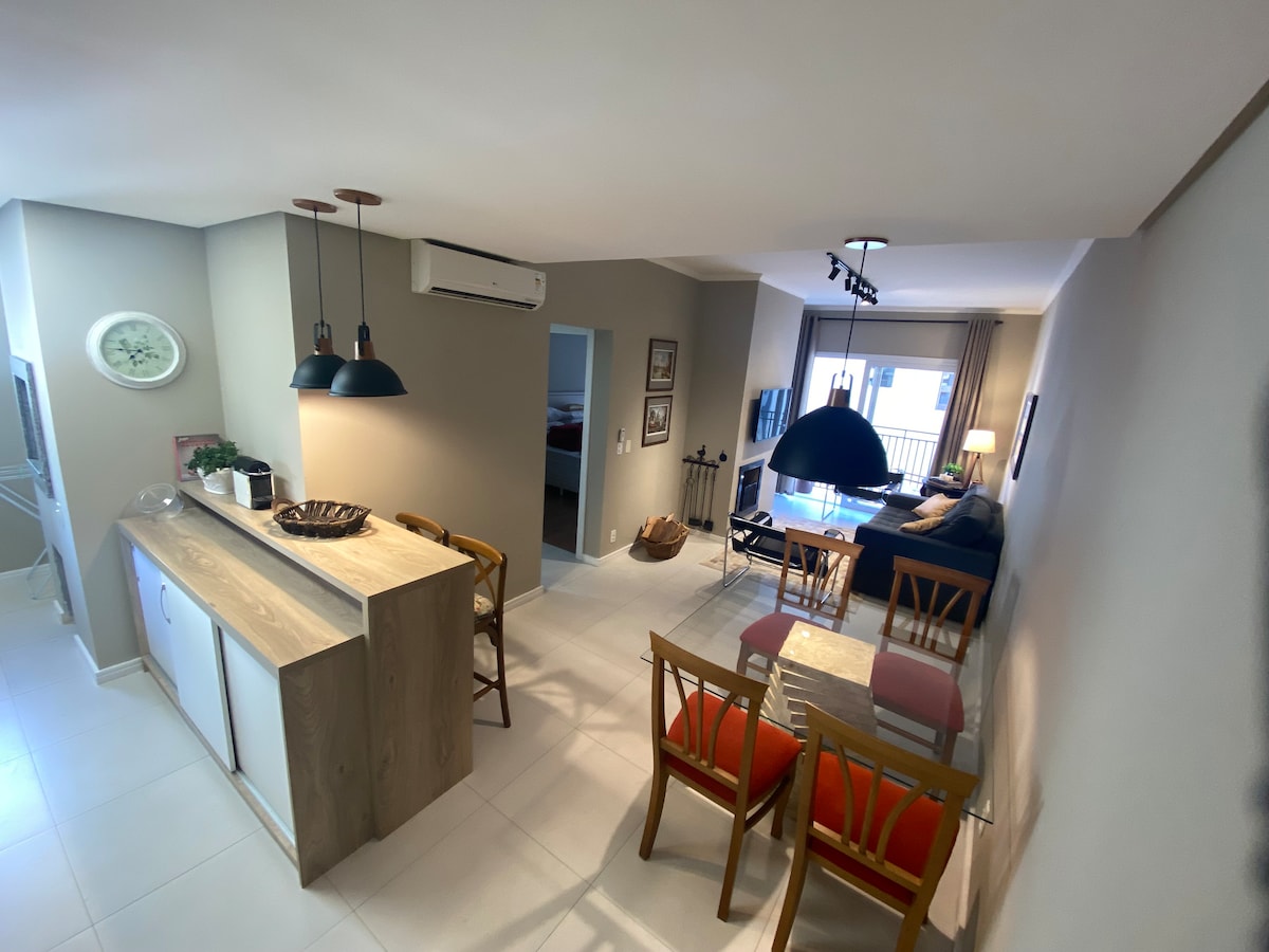 2 silid - tulugan Aconchegante AP sa isa sa mga pinaka - marangal na lugar ng lungsod, malapit sa Center at mga pangunahing tanawin. Equipado at pinalamutian alinsunod sa estilo ng Serra Gaúcha. Mayroon itong Wifi, Smart TV, gas at de - kuryenteng heating, fireplace, barbecue, washer/dryer, air conditioning, kusina, full bed at paliguan, garahe, lahat ng bagay na may magandang kalidad sa isang tahimik, lugar na gawa sa kahoy at perpekto para sa mga pamilyang naghahanap ng kaginhawaan at katahimikan. Pleksibleng oras ng pag - check in at pag - check