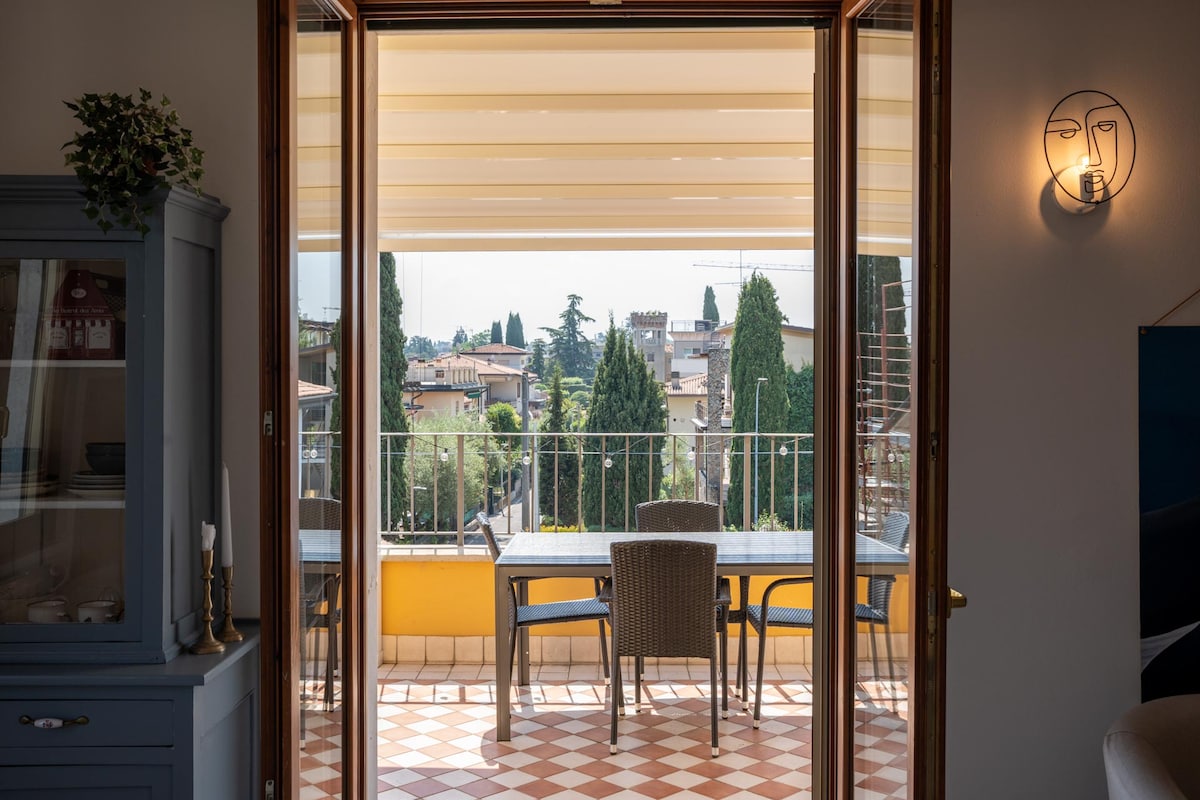 Sa loob ng Casa Carlottina, isang modernong penthouse na may romantikong lasa. Hinahati ito mula sa promenade ng mahabang lawa at ang mga katangian ng mga kalye ng Garda lamang ang sinaunang hagdanan ng pag - access sa tirahan. Depende sa availability, posibilidad na mag - book ng dalawang connecting apartment, hanggang 11 higaan. Madiskarteng lokasyon upang bisitahin ang Lake Garda at ang mga atraksyon nito tulad ng Gardaland, Caneva at Movieland. Posibilidad ng bayad na paradahan.