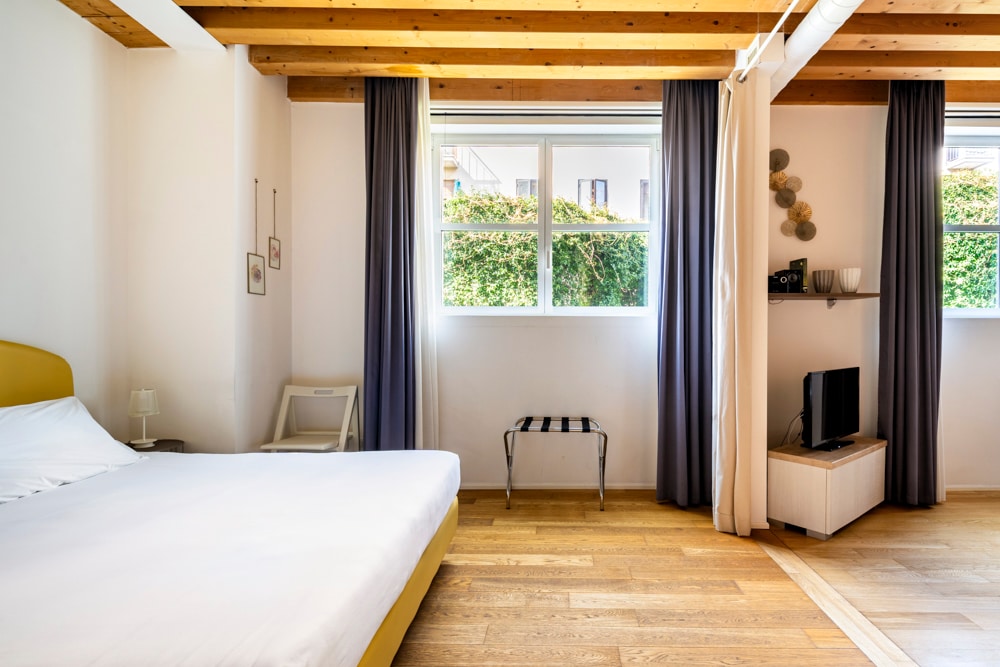 Pambihira ang maluwag na loft na ito na may design flair at garden view sa makasaysayang sentro ng Venice. Ang gusali ay ang eleganteng conversion ng isang lumang heating plant na muling idinisenyo ng mga arkitekto sa living space noong 2010. Sa isang tahimik na maliit na kalye, ilang minutong lakad pa mula sa mga istasyon ng tren/bus, Grand Canal, supermarket, restawran, tindahan. Tamang - tama para sa paggalugad ng 1,600 taong gulang na lungsod habang naglalakad, nang hindi ibinibigay ang pamantayan ng pamumuhay na nakasanayan mo ngayon kabilang ang high - speed WiFi, elevator, steam bath.