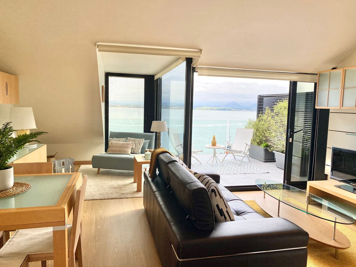 Tatak ng bagong marangyang duplex sa ibabaw ng daungan.