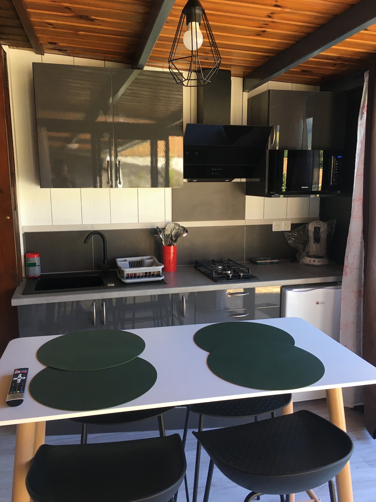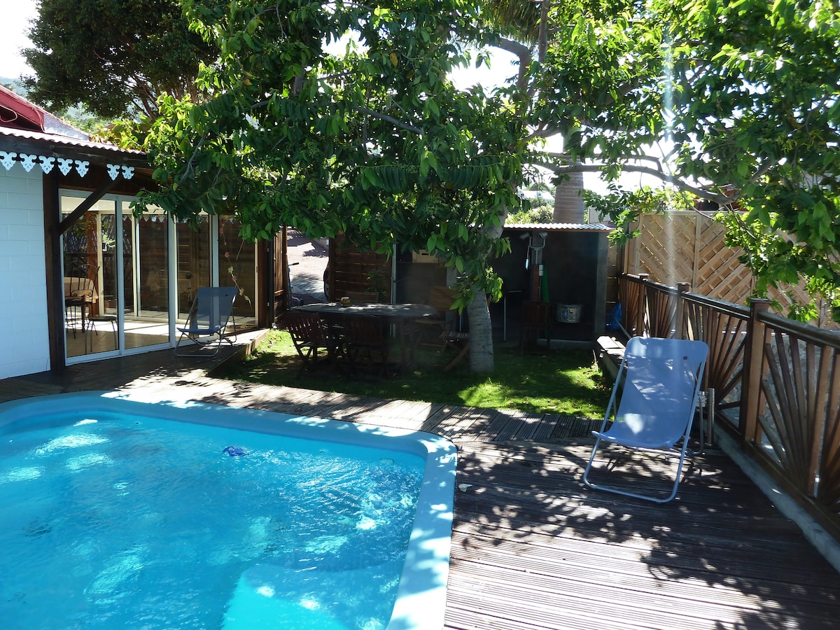 Tahimik na pahinga na napapalibutan ng mga puno ng prutas, tropikal na bulaklak, na napapalibutan ng kalikasan. Impasse sa gilid ng ravine. Ganap na kalmado. Huni ng ibon. Mainit na bungalow, outdoor terrace sa lilim ng mga puno. Maraming mga negosyo sa malapit - shopping center - multiplex cinema - mga restawran - Airport 10 minuto ang layo. Mga karaniwang lokal na pamilihan tuwing Miyerkules, Sabado at Linggo (Chaudron at Sainte - Marie). Maraming hike at paglalakad na malapit (mga pool at talon).