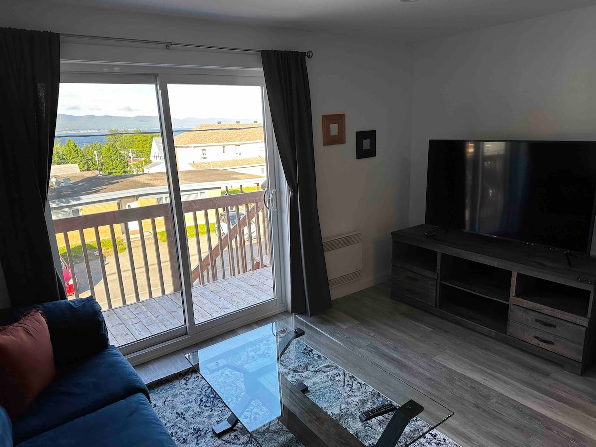 Nakamamanghang tanawin ng baybayin, isang bato mula sa sentro ng Gaspé Ilagay ang iyong mga bag sa maluwang na 2 silid - tulugan na apartment na ito sa gitna ng Gaspé. Mainam para sa mga pamilya o grupo, puwede itong tumanggap ng hanggang 6 na tao dahil sa mga king at queen bed nito, at sa sofa bed nito. Masiyahan sa katahimikan ng balkonahe na may mga tanawin ng baybayin, habang may mga restawran, tindahan, at serbisyo sa loob ng maigsing distansya. Kasama ang paradahan, walang kapantay na lokasyon. Baby cot (parke) kapag hiniling.