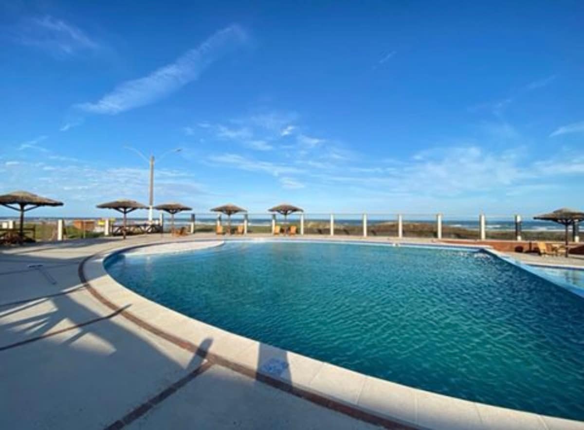 Mamuhay nang kagaya ng isang eksklusibong beach club. Ito ang House 17 (mayroon din kaming No. 23), parehong nakapatong sa buhangin sa loob ng parehong condominium, na pinagsasama ang kaginhawaan at paglilibang sa swimming pool na nakaharap sa dagat, mga kiosk, at barbecue grill. Perpekto para sa mga pamilya, magkasintahan, o grupo na naghahanap ng mga araw ng sikat ng araw at pahinga na may pagiging praktikal at kaligtasan. Pumili sa pagitan ng pagsisid sa dagat o pagrerelaks sa swimming pool na tinatanaw ang mga alon, ilang hakbang lamang mula sa iyong pinto.