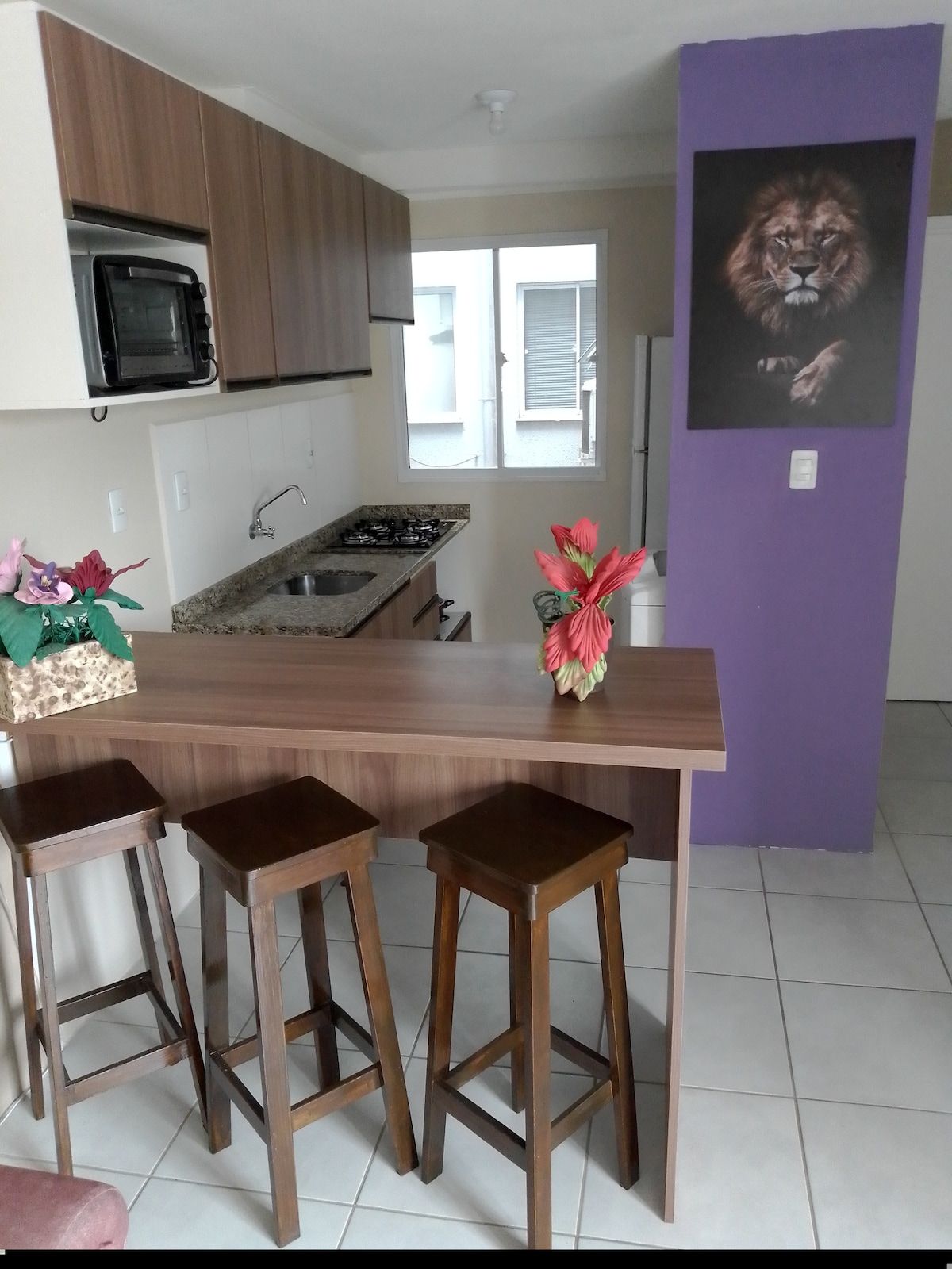 Buong apartment sa may gate na condo na may 24 na oras na concierge na may mga panseguridad na camera at car space. Mayroon itong porselana na sahig sa lahat ng kuwarto ng apartment, Interner 15 mega na may wifi, Brastemp 11Kg na washing machine ng damit, de - kuryenteng oven, microwave, cable TV na may 60 channel (net), air conditioning sa sala, 32 Inch TV. Bukod pa rito, may 400 metro ito mula sa mga botika, sobrang pamilihan, at bus stop. Nasa 4th Floor ang Apartment at WALANG elevator.