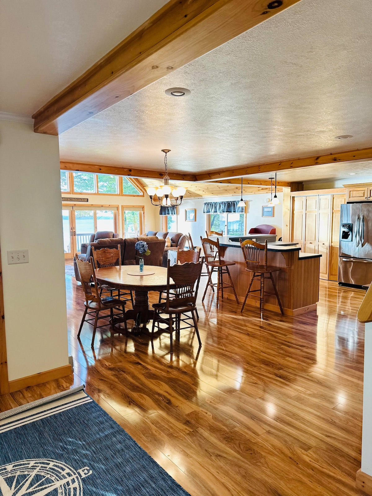 Your group will be comfortable in this open floor plan home, five minutes from Cape Vincent and twelve minutes from Clayton. Clean, cozy and comfortable. Sleeps seven comfortably. Three bedrooms (one king bed, one full and one queen,) two bathrooms and a desk area. There is a single, comfortable bed in the office area also with a privacy screen. Flat screens in the living and master, free wifi is also available.