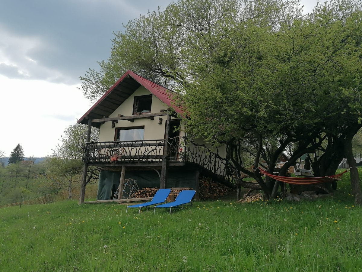 Ang cottage ay may magandang sala at kusina na kumpleto sa kagamitan, pati na rin ang fireplace. Ito ay lubhang kaakit - akit, ang perpektong lugar upang tamasahin ang bundok. Sa labas ay may magandang patyo na may outdoor terrace at lounge area para sa mga bisita, isang barbecue. May magandang stream na dumadaloy sa property. Mayroon ding palaruan para sa mga bata, 2 duyan, swing at relaxation area para sa mga may sapat na gulang - heated jacuzzi (na binabayaran nang dagdag kapag hiniling). Ito ay ang perpektong lugar para sa isang mahusay na bakasyon.