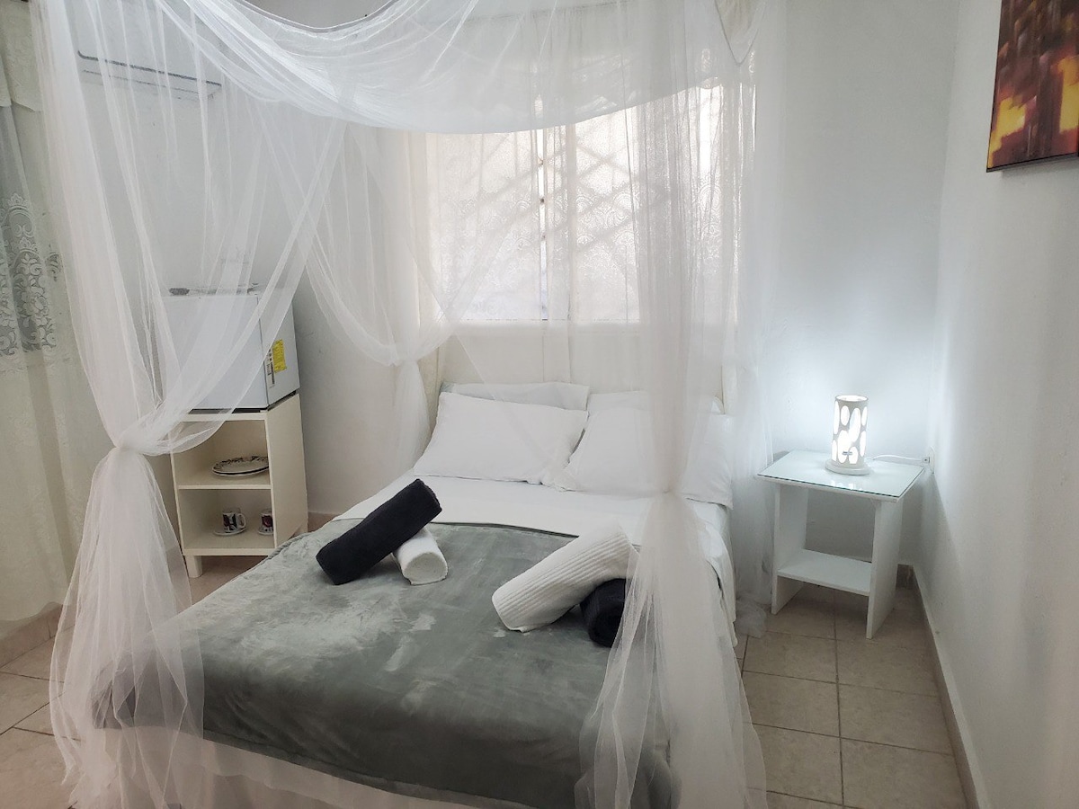 Matatagpuan ang maluwang na apartment na may isang silid - tulugan sa isang marangyang hardin, LIBRENG WIFI AT GENERATOR AT MGA SOLAR PANEL na halos walang pagputol ng kuryente, malayo sa maingay na ingay ng lungsod. Idinisenyo ang tuluyan para umangkop sa isang nakakarelaks na holiday kung saan maaari kang magrelaks sa iyong pribadong duyan, basahin ang iyong paboritong libro. p sa iyong pagdating na tinatanggap ng isang malaking inflatable pool at mga sunbed pati na rin ang tradisyonal na Cuban Ranchon.