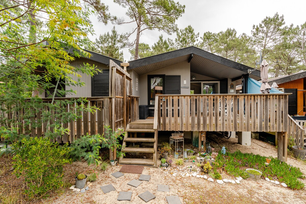Joli chalet au cœur de la pinède entièrement rénové en 2016. Il se situe entre le lac de Maubuisson, la base de loisirs de Bombannes et Carcans océan. Il est très fonctionnel, confortable avec un équipement tout neuf. Chalet en bois dans une pinède de 10 000m2 fermée aux voitures où les petits pourront jouer.