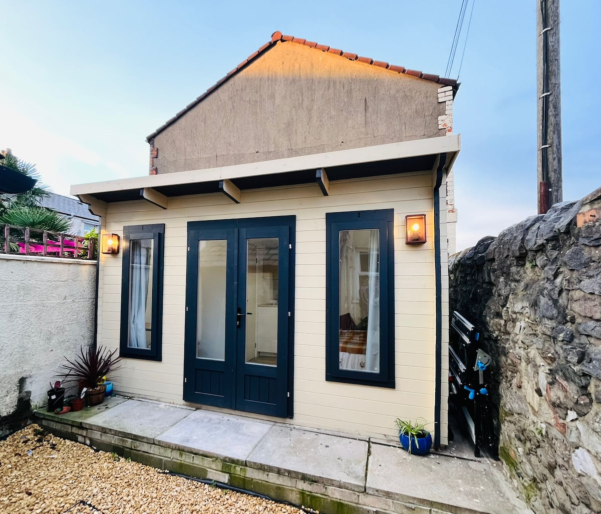 A completely self-contained annex-come-studio in our garden. It has everything you need for a short stay in Cardiff and is very close to lovely parks, cafes, restaurants and shops and is 25 mins walk or ten mins bus ride to town - the bus stop is right behind the annex. It is suitable for a couple, two friends (there's a pull-out single bed in the living area) or a couple with a child. We converted our garage during lockdown and created this unique and cosy space.