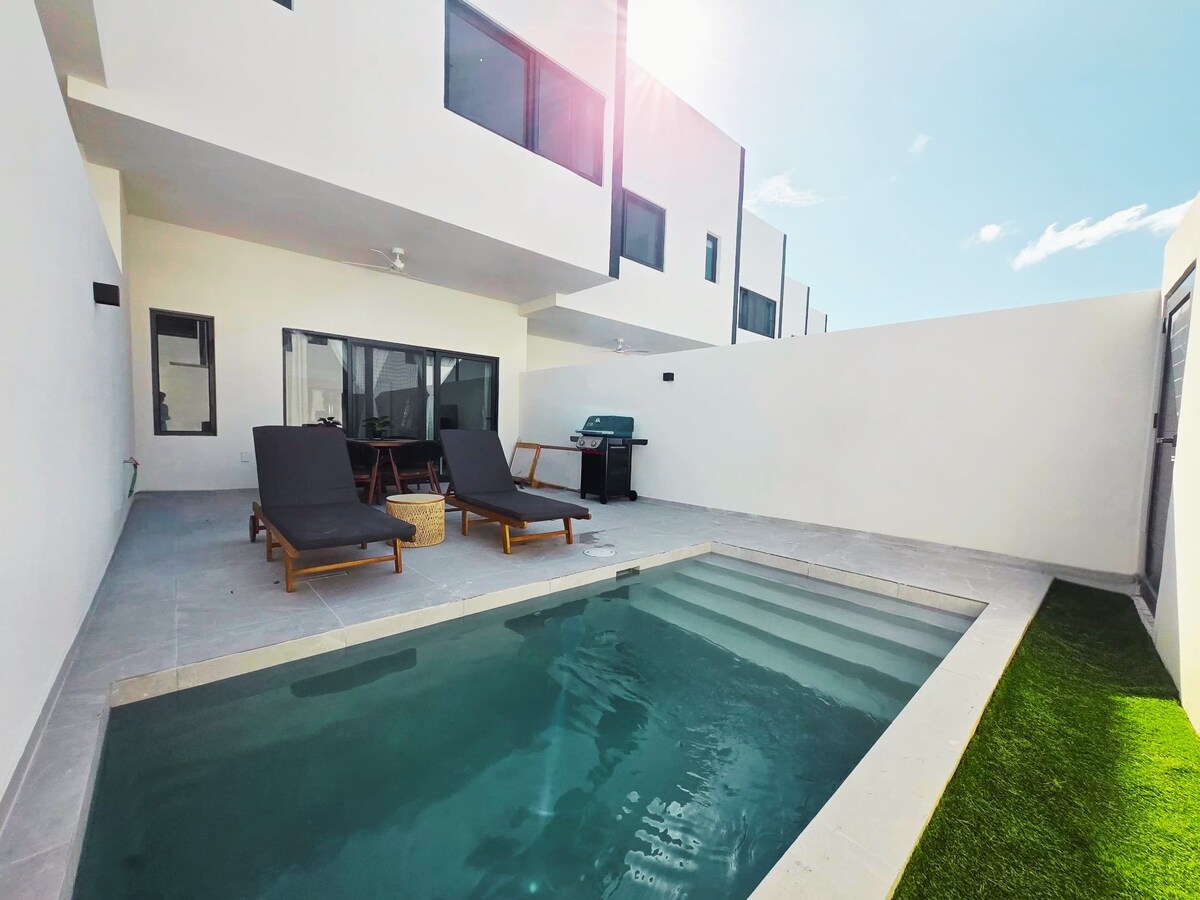 Maligayang pagdating sa Casa Carmela. Magrelaks sa resort sized pool at outdoor oasis. Matunaw ang araw sa ilalim ng kakaibang palapas o toast sa ilalim ng iyong mga buns sa ilalim ng araw. Anuman ang iyong kasiyahan, nilalayon ng Casa Carmella na mangyaring. May maigsing lakad siya papunta sa Palm Beach na isa sa mga nangungunang beach sa mundo. Ang mga restawran, casino at nightlife ay maaaring lakarin din. Nilagyan siya ng komportableng king size bed, gas grill, kusinang kumpleto sa kagamitan, mga beach chair at beach towel at cooler. Ang lahat ng ito ay sa iyo at sa iyo lamang.