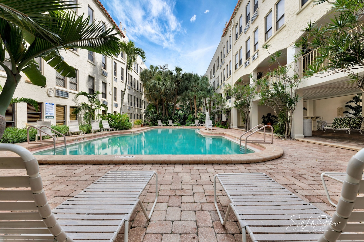 Beautiful and cozy 1br apartment in the historic Palm Beach Hotel. You can walk and ride bicycles everywhere from this central location in the heart of Palm Beach. King bed with memory foam mattress, luxury linens, separate living room, private Wi-Fi, beach chairs, towels, umbrella, stocked kitchenette w/ fridge. Private pool for guests. Beach is a block away. Laundry room in the building. *Weekly housekeeping is REQUIRED for long term stays! Message me for long term stay rates.