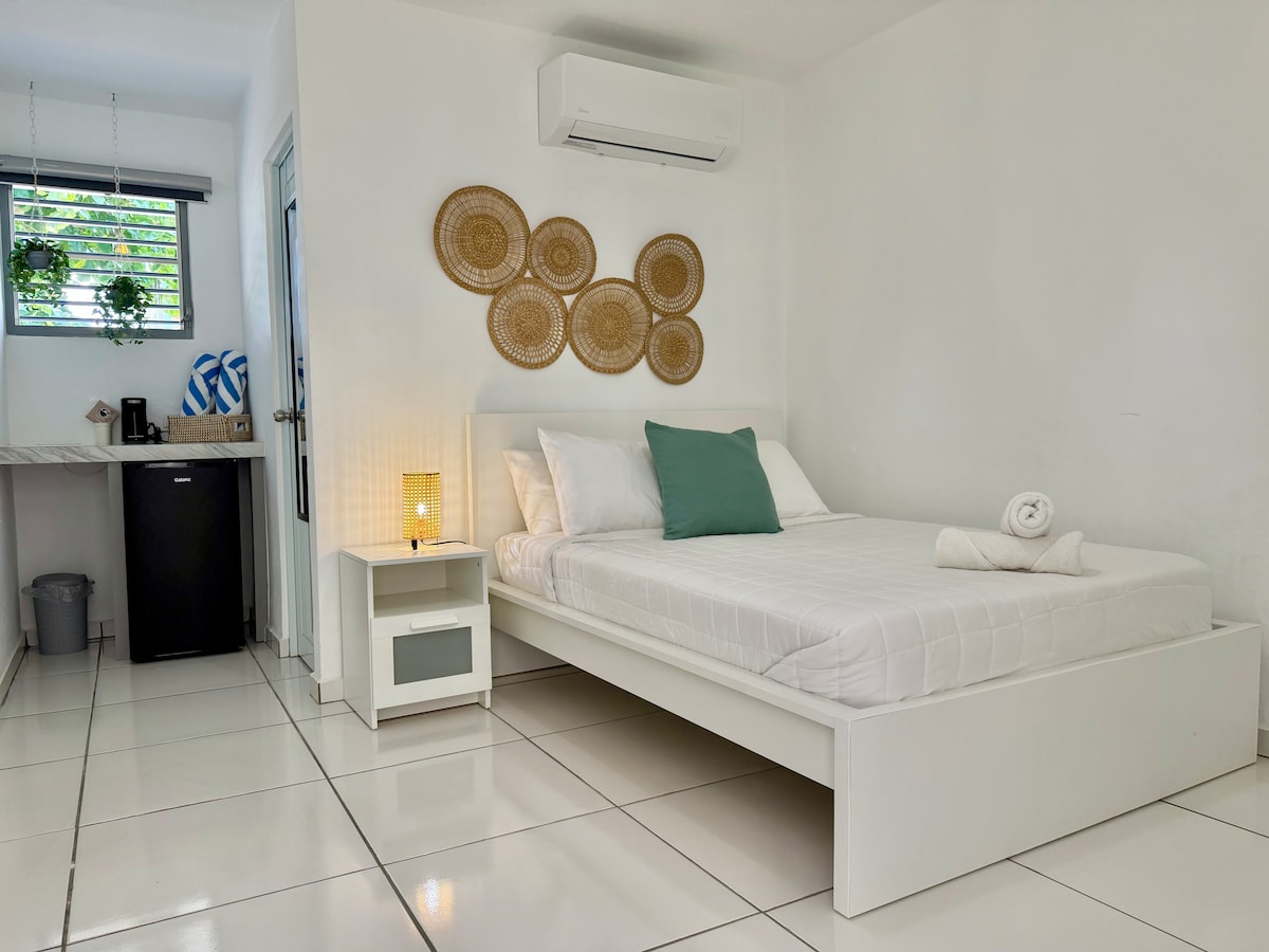 Your own private studio in an adults-only boutique retreat, designed for comfort and seclusion. Each space features a private plunge pool, lush garden, fully equipped kitchen, king-size bed with premium linens, sleek bathroom with hot shower, and a spacious living area with a 65" HD TV. A curated Aruba guide and attentive guest services complete your stay. Welcoming 3 guests per studio.