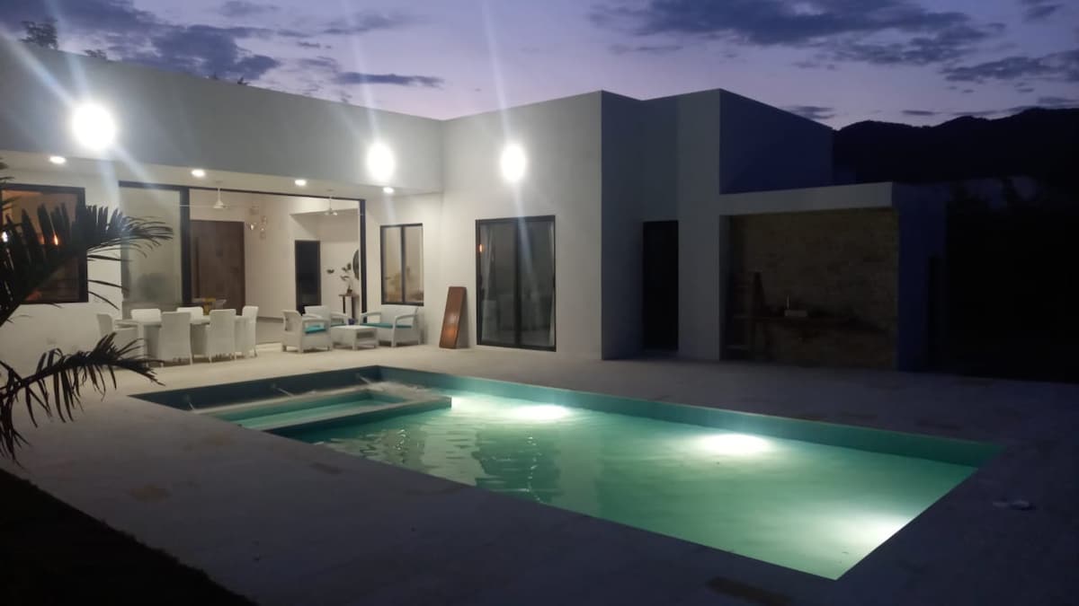 Magrelaks kasama ng buong pamilya sa lugar na ito kung saan humihinga ang katahimikan. Panlabas na sports at ehersisyo, Tobogan, Olympic pool, tennis court, basketball, microfutball area, BBQ area, lawa, pedestrian trail, pribadong pool, mahusay at maluwag na social area, kusinang kumpleto sa kagamitan, paradahan para sa 4 na sasakyan, privacy at kaligtasan...