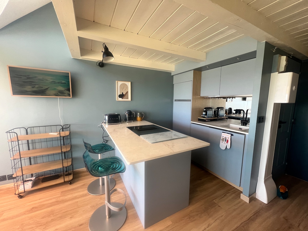 Tuklasin ang AURENOË, ang aming komportableng apartment para sa 2 tao sa Carnac Plage. Matatagpuan sa pinakamataas na palapag ang maliwanag na tuluyan na ito na may maaraw na terrace at 5 minuto lang ang layo nito sa mga beach at tindahan kung lalakarin. Magkaroon ng tahimik at nakakarelaks na pamamalagi na may lahat ng kaginhawaan na kailangan mo para sa perpektong bakasyunan sa tabing-dagat.