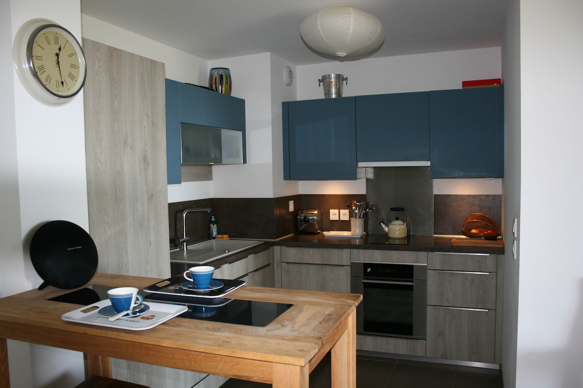 T2 48 m2 + 10m2 terrace (sheltered from wind/rain) on quiet beach on the right bank, on the 1st line. All rooms have sea views. Luxury residence 2015. 2 sheltered/secure parking spaces. Bike storage. Access to the residence is completely secure with videophone, entry code and security guard. Proximity to shops: bakery, butcher, grocery store, tobacco press are 3 minutes' walk away. Port, town center and restaurants are 150-300 m away on foot, along the beach.
